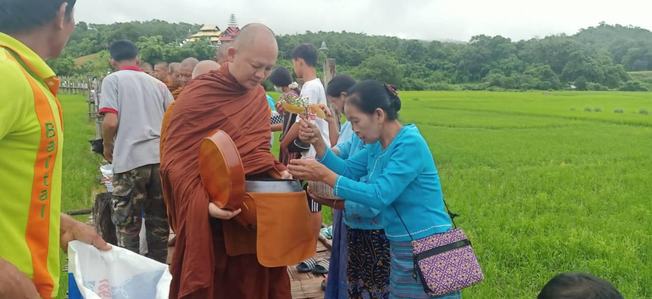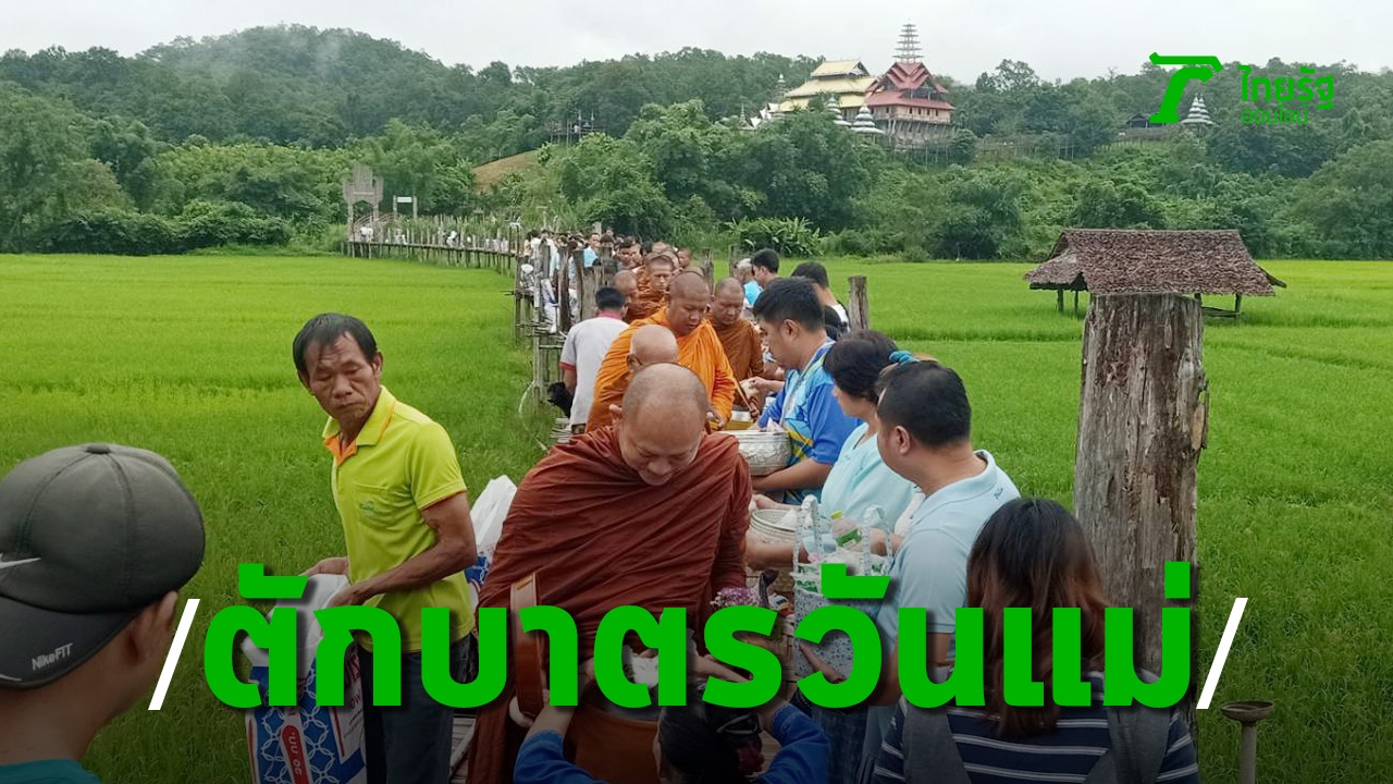 พุทธศาสนิกชนทำบุญตักบาตรถวายเป็นพระราชกุศลที่สะพานซูตองเป้ จ.แม่ฮ่องสอน
