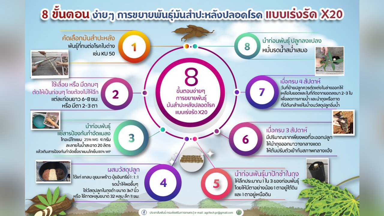 กรมส่งเสริมการเกษตร วอนชาวไร่มัน เริ่มฤดูกาลผลิตใหม่ ใช้พันธุ์ทนโรคใบด่าง KU 50 ระยอง 72 ห้วยบง 60 เลิกปลูกพันธุ์อ่อนแอ