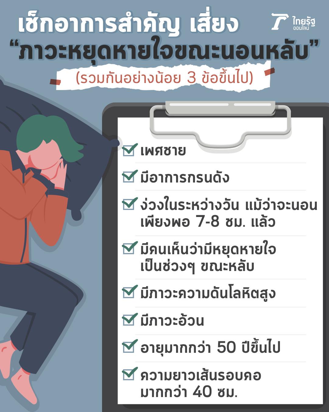 - เช็กอาการสำคัญ เสี่ยง "ภาวะหยุดหายใจขณะนอนหลับ"