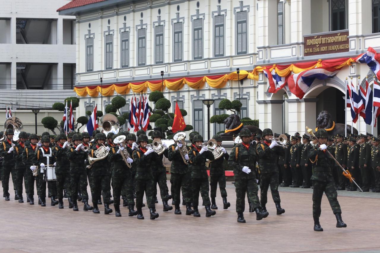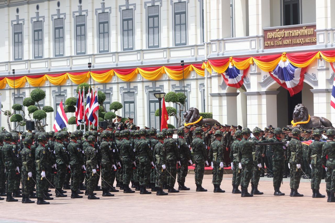 เมื่อย้อนกลับดูวันรับส่งหน้าที่ ผบ.ทบ. กองทัพบกได้จัดพิธีอย่างสมเกียรติ โดยจัดกองทหารเกียรติยศ จากกองพลที่ 1 รักษาพระองค์ นำโดย พล.ต.ทรงพล สาดเสาเงิน ผบ.พล.1 รอ. เป็น ผบ.กองผสม พร้อมด้วยทหารราบ ม้า ปืน จากกองพันทหารราบที่ 2 กรมทหารราบที่ 31 รักษาพระองค์, กองพันทหารม้าที่ 1 กรมทหารม้าที่ 1 รักษาพระองค์ ผสมกองพันทหารม้าที่ 3 กรมทหารม้าที่ 1 รักษาพระองค์ และกองพันทหารปืนใหญ่ที่ 11 กรมทหารปืนใหญ่ที่ 1 รักษาพระองค์ กองพันละ 116 นาย และหมู่เชิญธงประจำกองทัพบก 2 หมู่ หมู่ละ 4 นาย จัดจากกองพลที่ 1 รักษาพระองค์ และกองพลทหารม้าที่ 2 รักษาพระองค์ รวม 561 นาย ผู้บังคับกองผสม