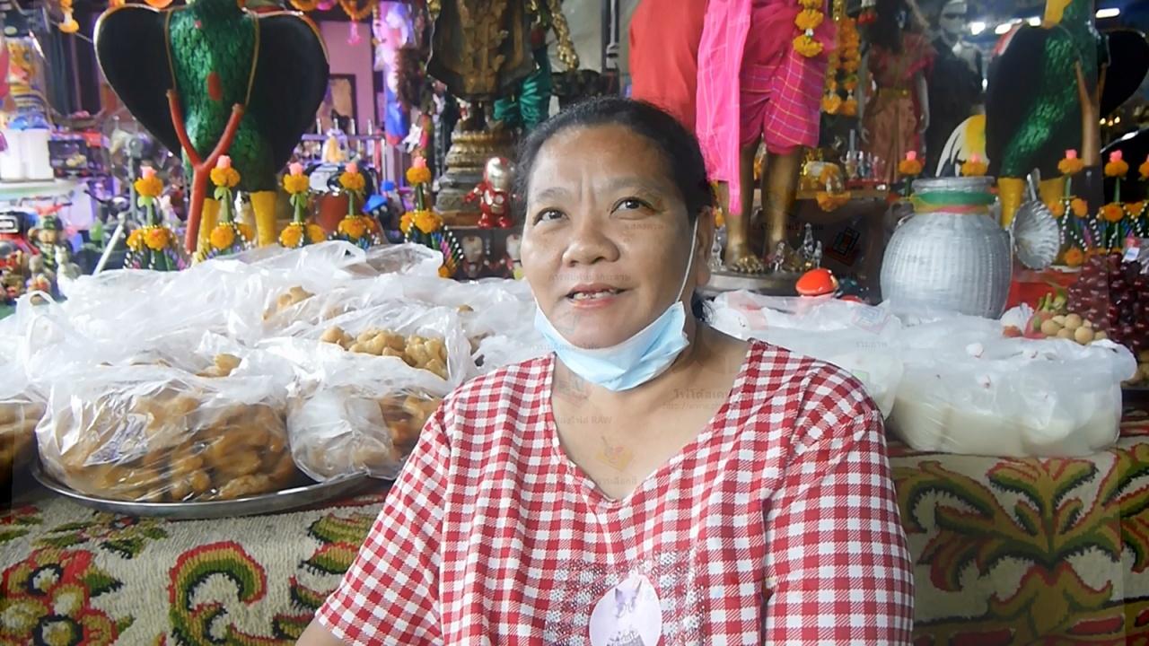 ส่วน นางเกษณี มั่นทิม อายุ 49 ปี ชาว อ.บ้านโป่ง จ.ราชบุรี ได้นำน้ำเต้าหู้ พร้อมปาท่องโก๋ จำนวน 100 ชุด มาถวายแก้บน พี่ไข่ พี่จุก และน้องจันทิมา วัดเขากรวด โดยเปิดเผยว่า ตนเป็นชาว อ.บ้านโป่ง มีอาชีพขายน้ำเต้าหู้ และเคยเดินทางมาที่วัดเขากรวด บ่อยครั้งเพื่อมากราบไหว้ขอพรขอโชคลาภจาก พี่ไข่ พี่จุก และน้องจันทิมา