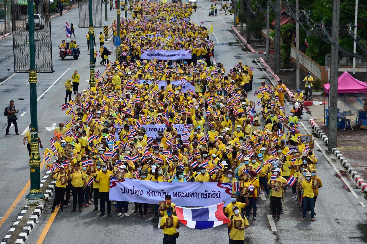 ประชาชนในหลายจังหวัดร่วมสวมเสื้อเหลือง เดินขบวน แสดงจุดยืนปกป้องสถาบัน พร้อมเปล่งเสียง ทรงพระเจริญ ตลอดเส้นทาง