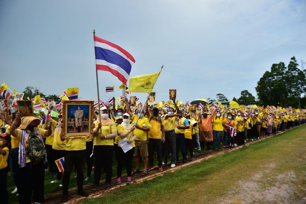ทั้งนี้ มีประชาชนได้โบกธงตราสัญลักษณ์ และธงชาติไทย พร้อมเปล่งเสียงทรงพระเจริญ ตลอดเส้นทาง เพื่อร่วมพลังแสดงจุดยืนปกป้องสถาบันพระมหากษัตริย์