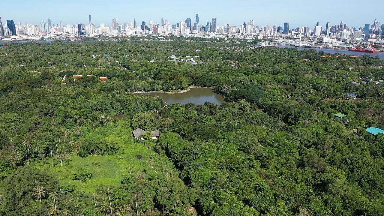 ถ้ามองลงมาฟ้าจะมีรูปร่างคล้ายกระเพาะหมู ชุ่มชื้นไปด้วยต้นไม้เขียว ทั้งในสวนสาธารณะ ป่าชุมชนและแปลงเกษตรของชาวบ้าน อยู่ท่ามกลางป่าคอนกรีตของกรุงเทพฯ