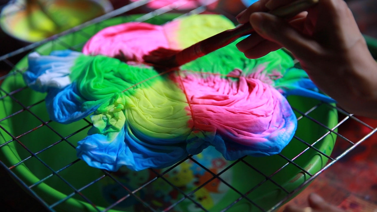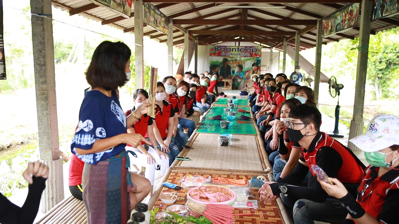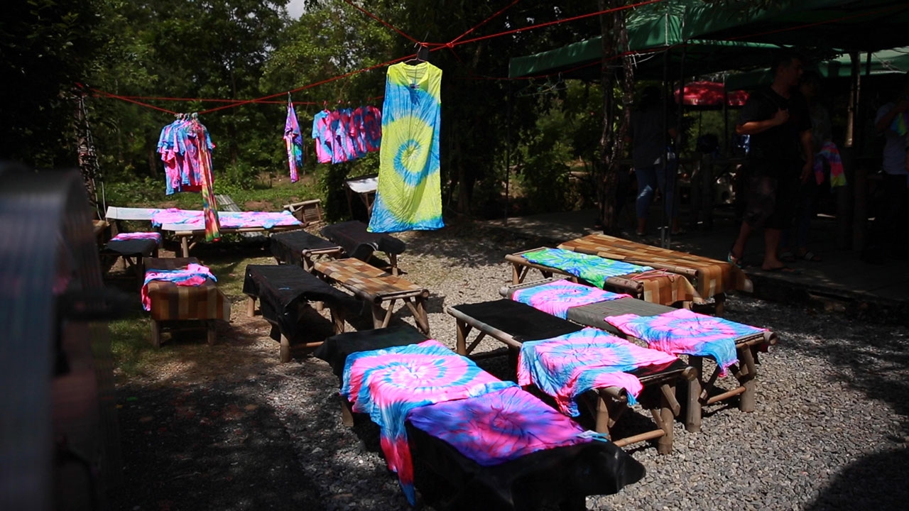 ด้วยการต้อนรับอย่างเป็นกันเองเสมือนญาติ นักท่องเที่ยวจะได้เริ่มสนุกกับการทำผ้ามัดย้อมด้วยตัวเอง มีผ้าพันคอ หมวก และเสื้อให้เลือกหยิบมามัดย้อม เทคนิคง่ายใช้เวลาน้อย ระหว่างรอให้สีแห้ง ก็พักไปลองทำธูปหอมสมุนไพร