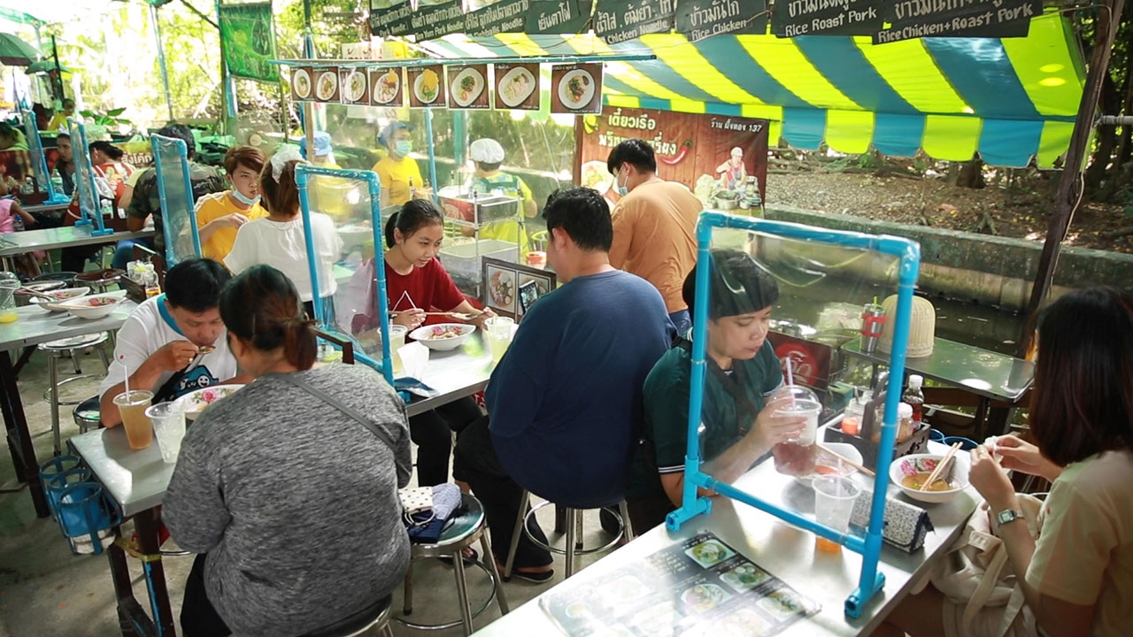 ออกจากสวนสาธารณะ ได้เวลาอาหารกลางวัน ที่หมายต่อไปคือตลาดนัด ระหว่างทางมีร้านกาแฟเก๋ๆ ให้แวะดื่มกินและถ่ายรูปเช็กอินเป็นที่ระลึกก่อนเข้าตลาดนัดบางน้ำผึ้ง