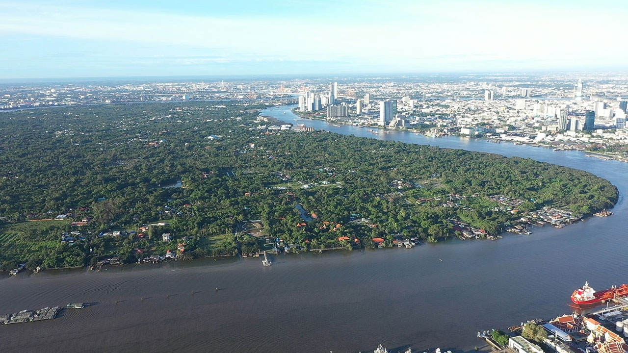 ที่เป็นเช่นนี้เพราะพื้นที่คุ้งบางกะเจ้าประมาณ 19 ตารางกิโลเมตร ล้อมรอบด้วยแม่น้ำเจ้าพระยาเกือบจะทั้งหมด
