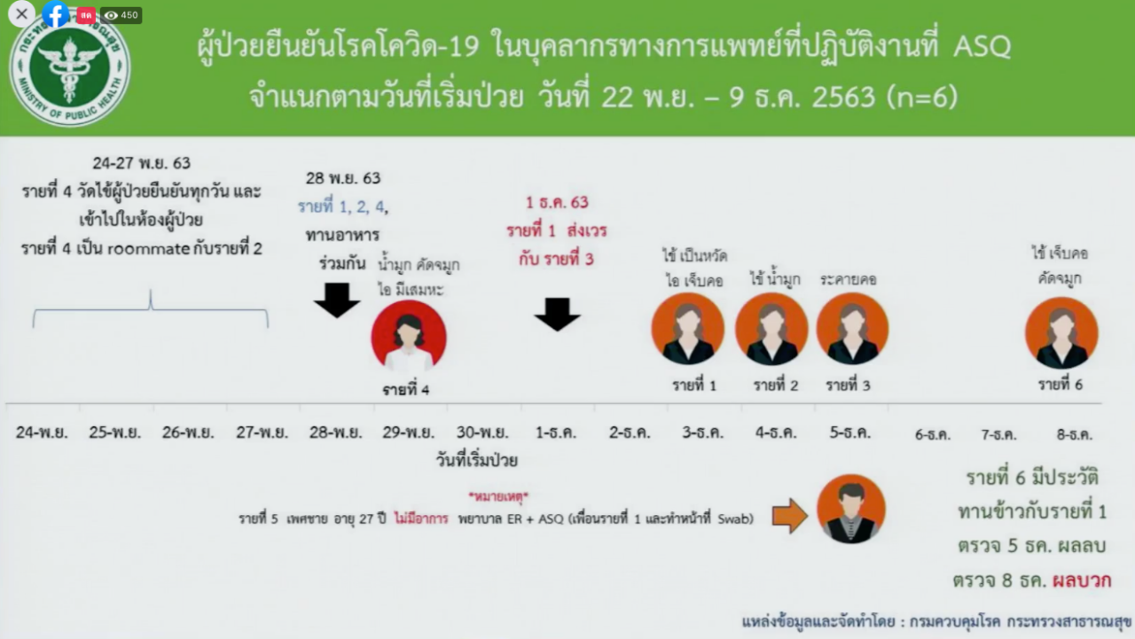 เปิดไทม์ไลน์ ผู้ป่วยติดเชื้อโควิด-19 รายล่าสุด 1 ราย เพศหญิง อายุ 29 ปี เป็นบุคลากรทางการแพทย์ รายที่ 6 อยู่ในกลุ่มผู้สัมผัสเสี่ยงสูง