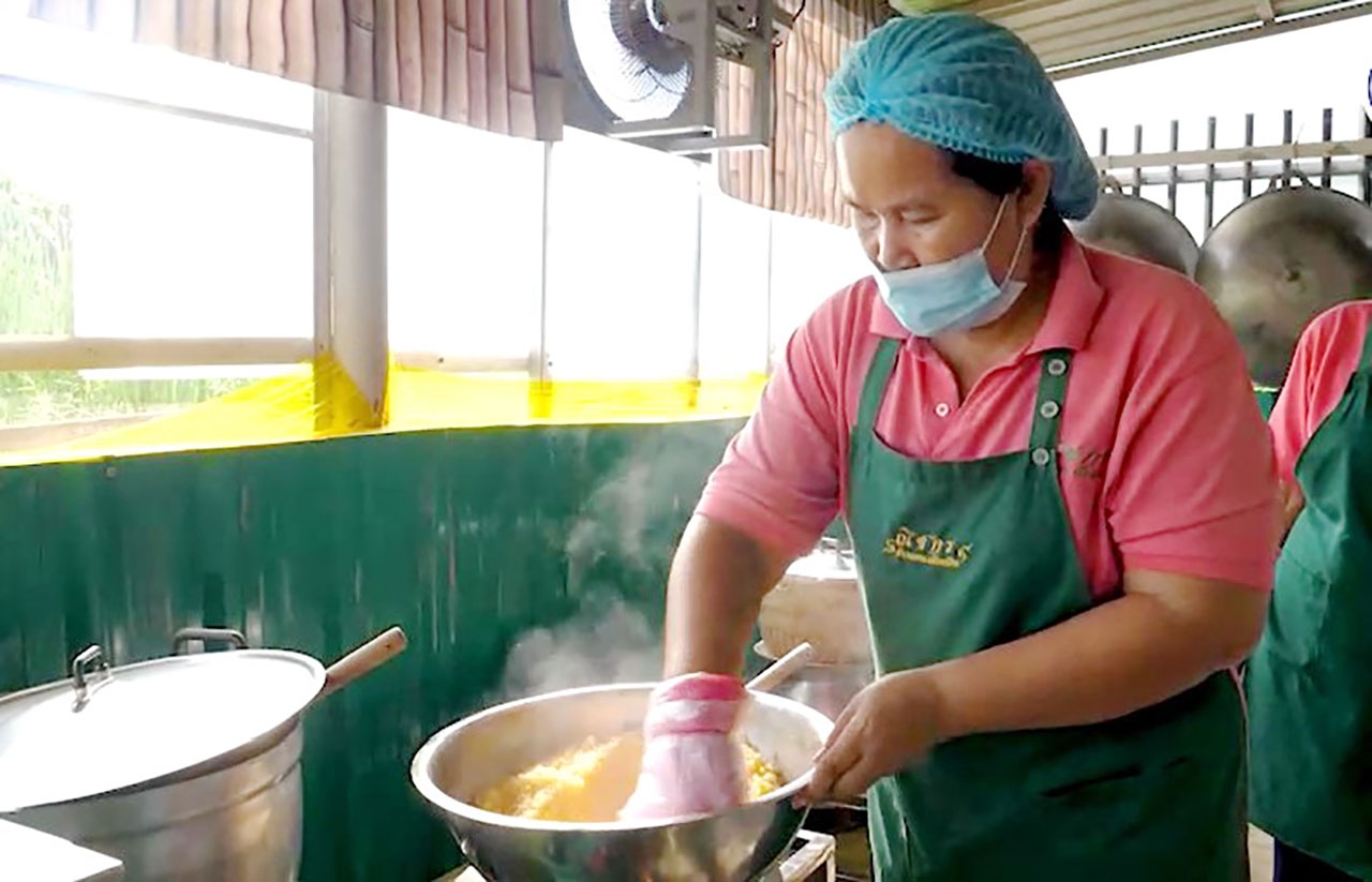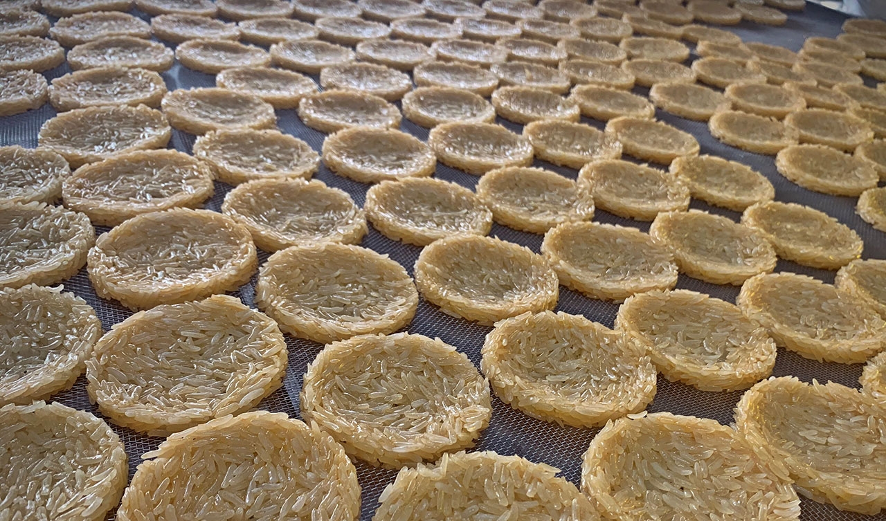 “ความหมายของมีนบุรี คือ เมืองปลา เราก็เลยทำข้าวแตนหน้าปลาขึ้นมา โดยรับซื้อปลาช่อนอบแห้ง จากกลุ่มแม่บ้านตาลเดี่ยว เครือข่ายวิสาหกิจชุมชนที่อยู่ใกล้ๆ กันมาทำ ส่วนวัตถุดิบอื่นๆ อย่าง ข้าวเหนียว แตงโม เราก็รับซื้อมาจากเครือข่ายเกษตรกรของเรา เป็นการช่วยเหลือพึ่งพากัน”