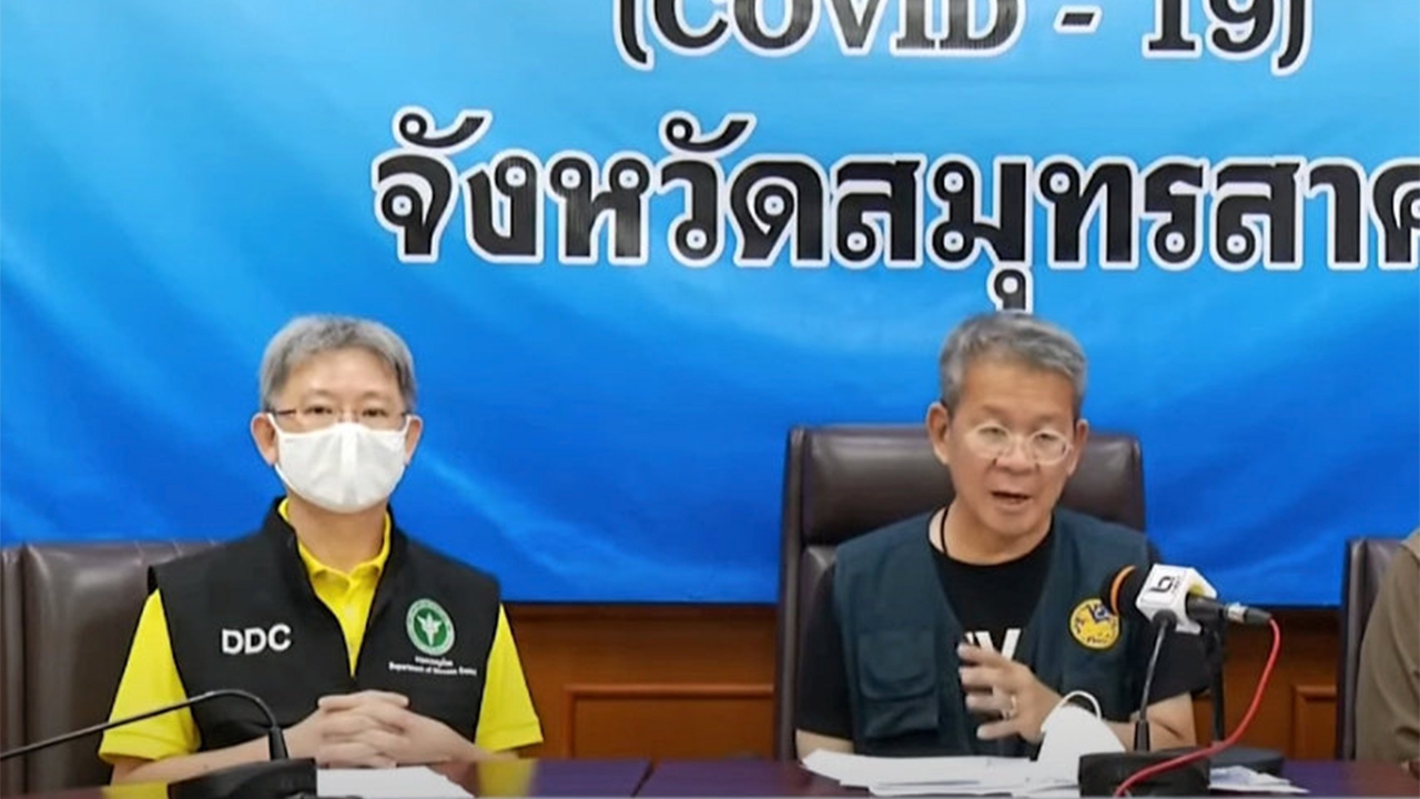 นพ.โอภาส การย์กวินพงศ์ อธิบดีกรมควบคุมโรค แถลงข่าวด่วนพร้อมนาย วีระศักดิ์ วิจิตร์แสงศรี ผวจ. สมุทรสาคร หลังพบผู้ติดเชื้อโควิด-19 เชื่อมโยงผู้ป่วยหญิงวัย 67 ปี ในตลาดกลางกุ้งฯเพิ่มอีก 548 คน ทำให้ต้องยกระดับการควบคุมการแพร่ระบาดด้วยการห้ามเข้าออกนอกพื้นที่ ปิดสถานที่เปราะบาง ตั้งแต่ บัดนี้ยาวถึง 3 ม.ค.64.