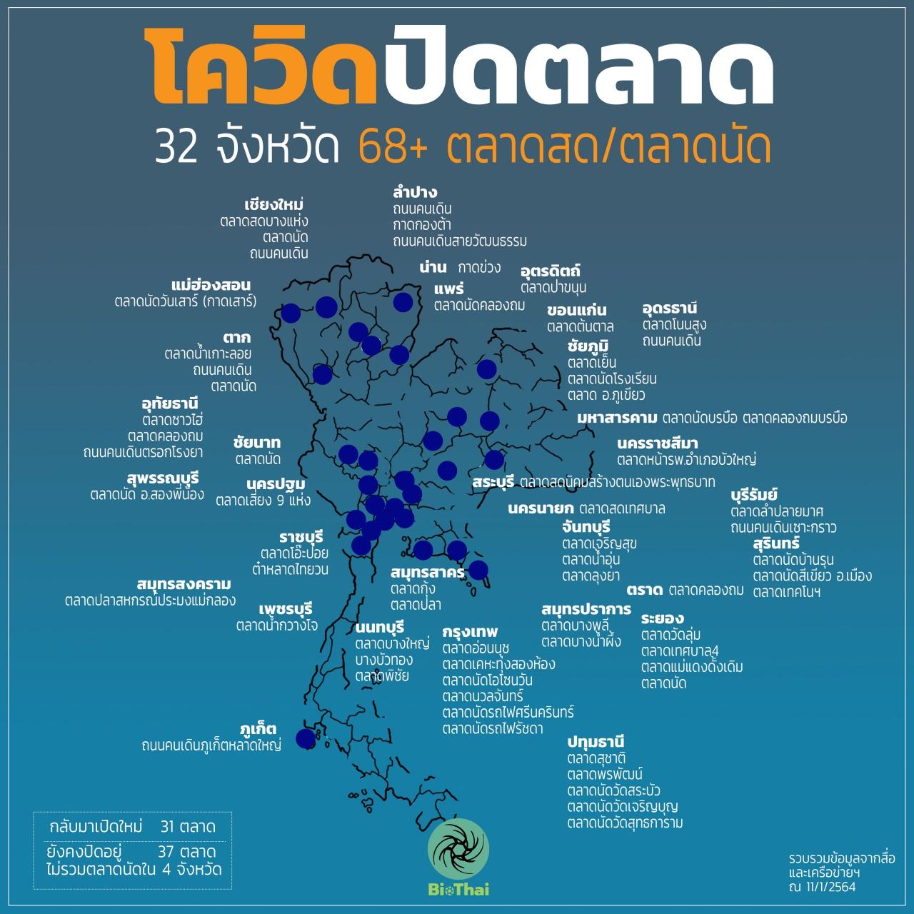 วันที่ 13 ม.ค.64 นายวิฑูรย์ เลี่ยนจํารูญ ผู้อำนวยการมูลนิธิชีววิถี หรือ "ไบโอไทย" เปิดเผยว่า จากสถานการณ์การแพร่ระบาดของเชื้อไวรัสโควิด-19 ทำให้รัฐบาลสั่งปิดตลาดสด ตลาดนัด กว่า 68 แห่ง รวม 32 จังหวัด แม้จะกลับมาเปิดใหม่ 31 แห่งนั้น ถือเป็นเรื่องความมั่นคงด้านอาหาร กระทบคนจำนวนมาก 4 กลุ่ม คือ 1.ผู้ประกอบการพ่อค้าแม่ค้า 2.ผู้ใช้แรงงานที่ทำงานในตลาด 3.กลุ่มเกษตรกร ผู้ผลิตสินค้ารายย่อยอื่นๆ 4.ผู้บริโภคส่วนใหญ่ไม่สามารถเข้าถึงแหล่งอาหาร เพราะตลาดเป็นทั้งพื้นที่ทางเศรษฐกิจ และพื้นที่ความมั่นคงทางอาหารของคนจำนวนมาก