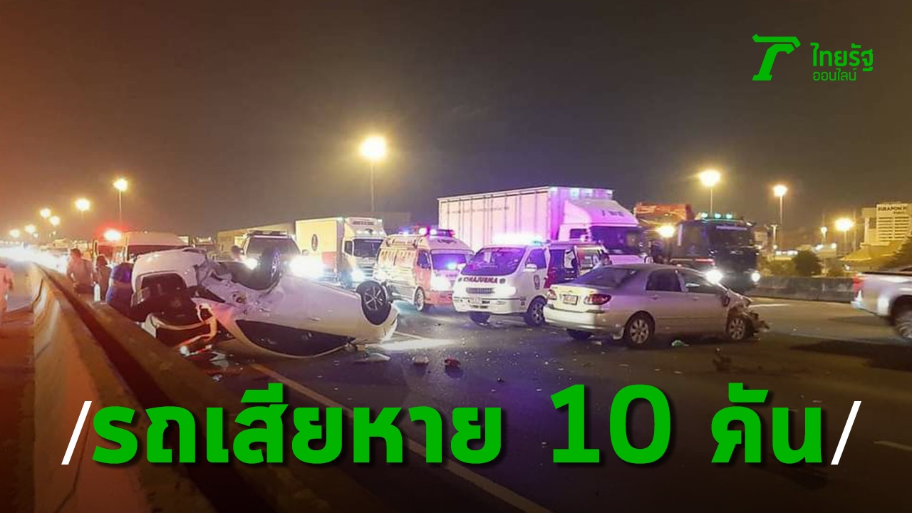 เกิดอุบัติเหตุรถชนกัน 10 คันรวด บนทางด่วนกาญจนาภิเษก บริเวณก่อนถึงด่านเทพารักษ์ เบื้องต้นมีผู้ได้รับบาดเจ็บ 5 ราย