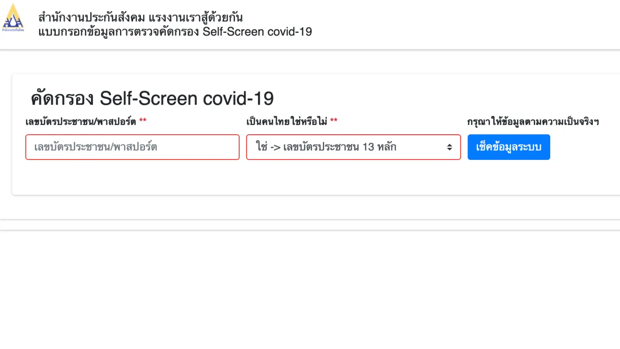 - จากนั้นผู้ประกันตนกรอกเลขประจำตัวประชาชน 13 หลัก หรือเลขพาสปอร์ต