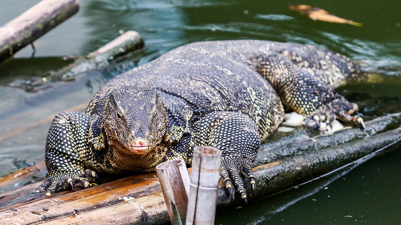 สู้กันพักใหญ่ เหี้ยยอมแพ้ เลื้อยหนีลงคลอง