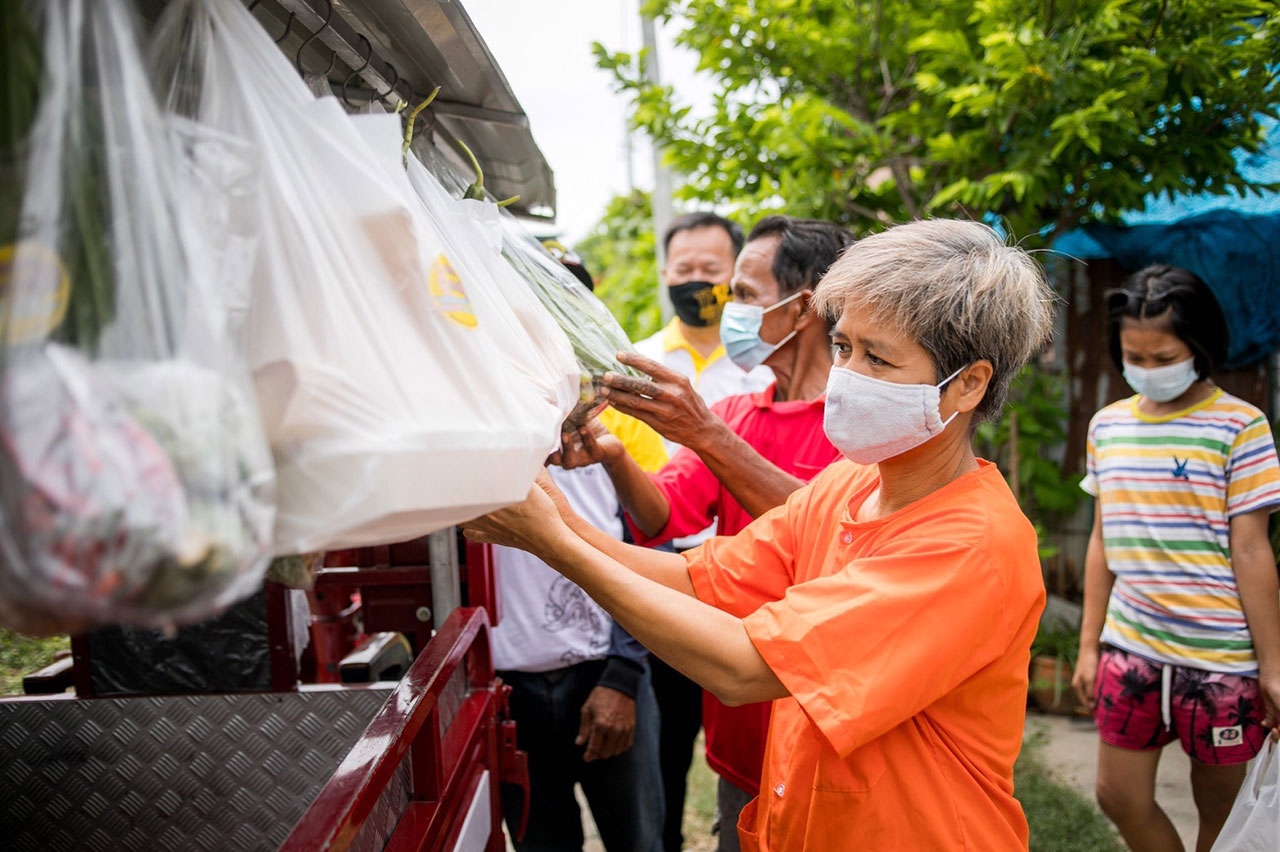 คุณบุญเลิศ นาคอุไร ผู้ช่วยกรรมการผู้จัดการ บริษัท บุญรอดเอเซียเบเวอเรช จำกัด เปิดเผยว่า "สืบเนื่องจากการแพร่ระบาดไวรัสโควิด-19 มีผู้ได้รับผลกระทบมากมายในจังหวัดสิงห์บุรี โดยเฉพาะอย่างยิ่งจากสภาพเศรษฐกิจ บริษัทฯ จึงนำผลผลิตจากแปลงเกษตรในโรงงานทั้งผักและผลไม้ปลอดสารพิษ ออกรถพุ่มพวง เพื่อเติมกำลังใจ มอบความสุข และบรรเทาความเดือดร้อนให้กับชาวชุมชนที่ได้รับผลกระทบจากโควิด-19 รวมทั้งใช้โรงครัวภายในบริษัทปรุงอาหารเมนูต่างๆ ออกมอบให้กับชุมชนใกล้เคียงกว่า 1,300 ครัวเรือน ใน ต.พระงาม อ.พรหมบุรี จ.สิงห์บุรี"
