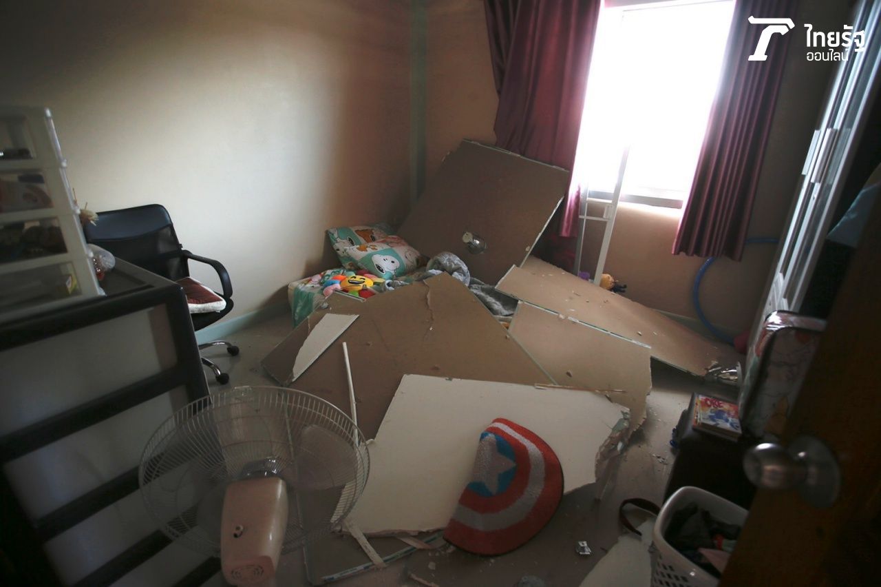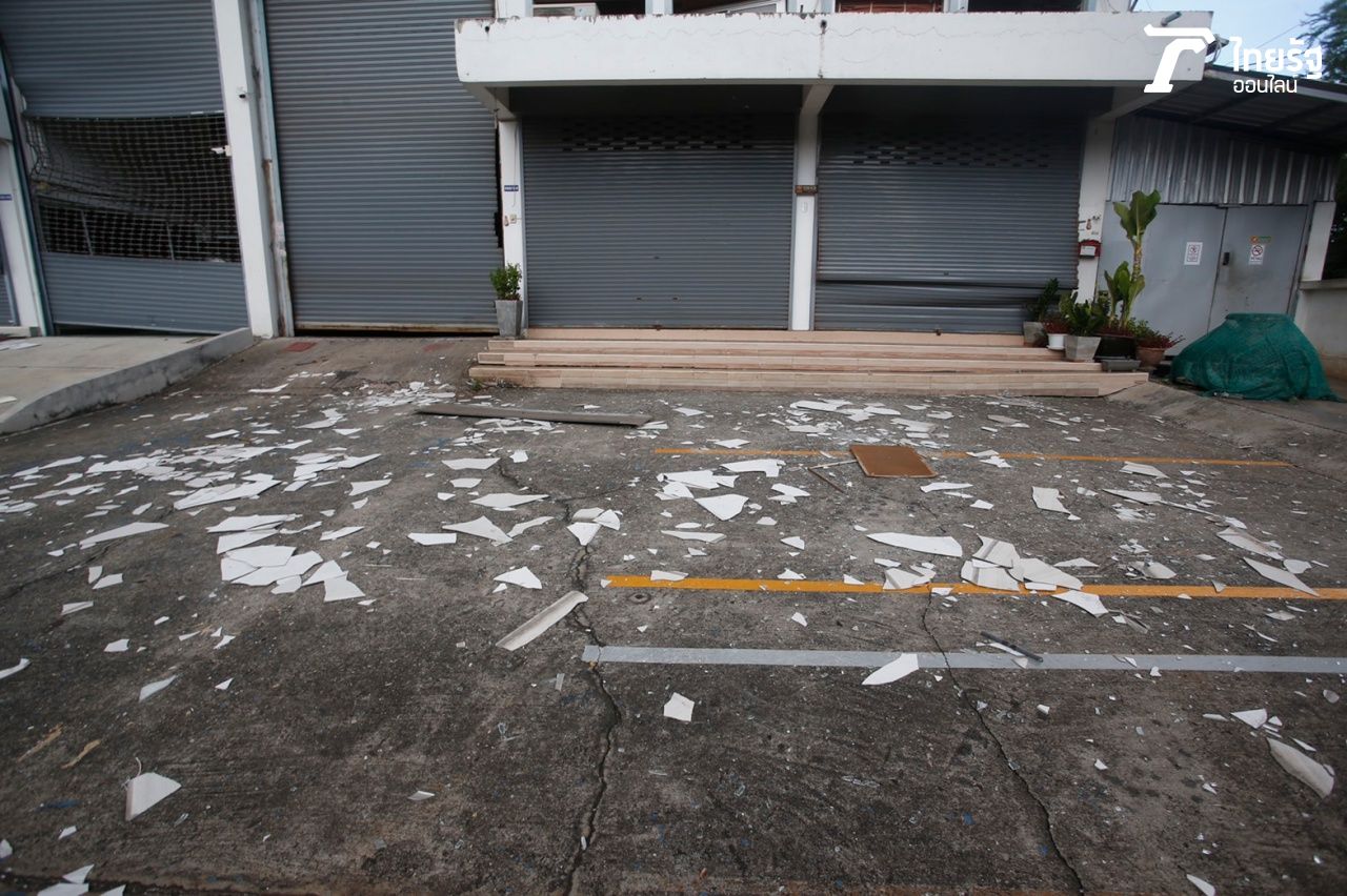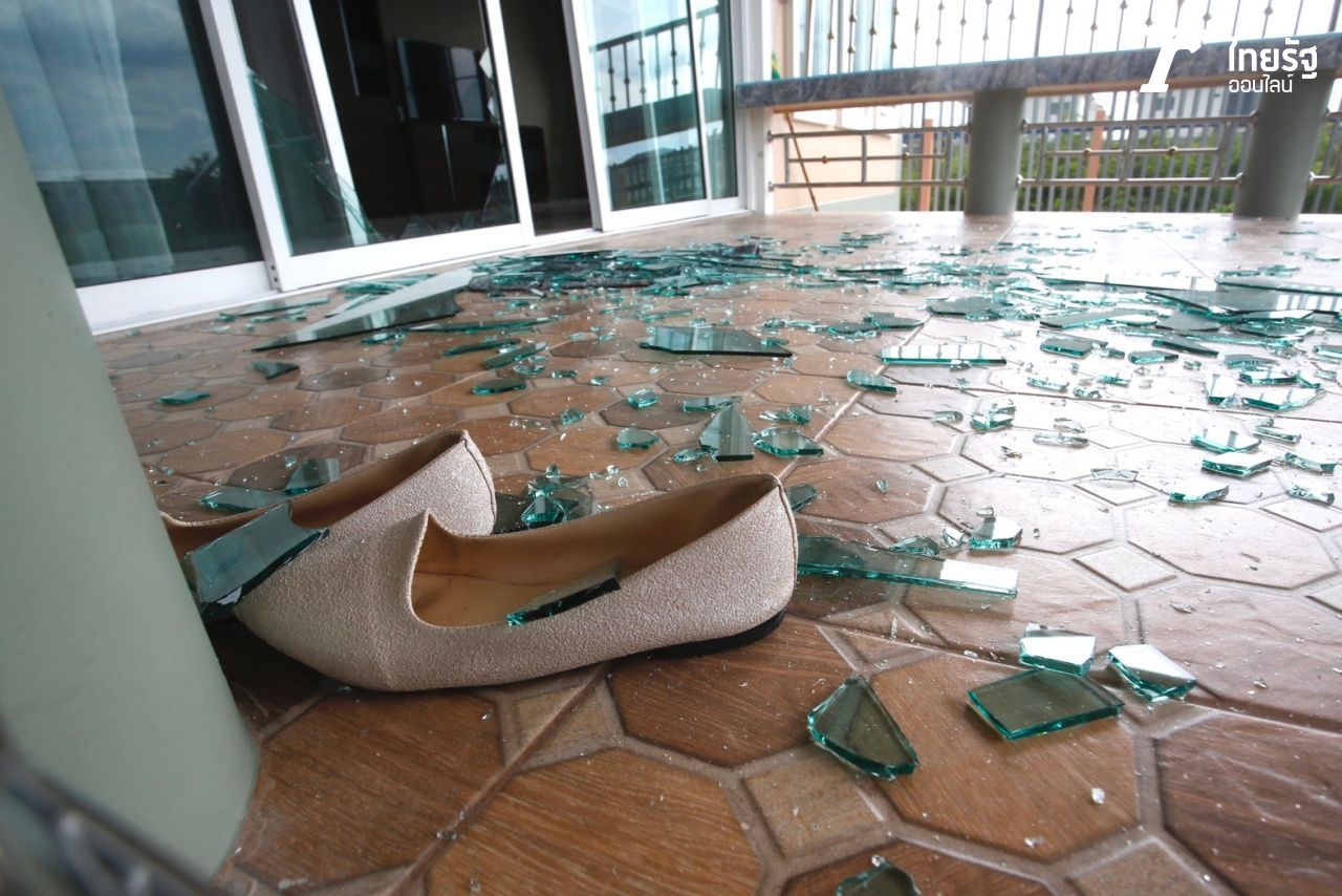 ประมวลภาพความเสียหาย "โรงงานกิ่งแก้วไฟไหม้" เสียงระเบิดสนั่นกลางดึก บ้านเรือนประชาชนได้รับผลกระทบเสียหายเป็นวงกว้าง เพดาน ผนังอาคาร กระจก แตกกระจัดกระจาย
