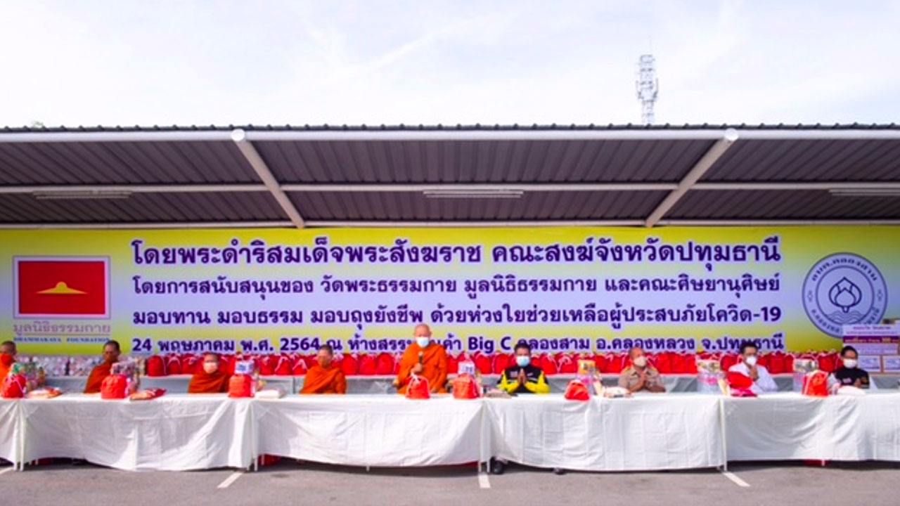 โดยพระดำริสมเด็จพระสังฆราช วัดพระธรรมกายและมูลนิธิธรรมกายถวายมหาสังฆทานออนไลน์แด่คณะสงฆ์ 56,000 รูป มอบเครื่องบริโภคและเวชภัณฑ์ ช่วยผู้ประสบภัยจากโควิด-19 กว่า 200,000 รายการ