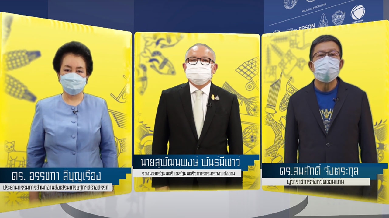 “เทศกาลอีสานสร้างสรรค์ 2564” เริ่มต้นเมื่อวันที่ 9 กรกฎาคม 2564 และมีพิธีเปิดอย่างเป็นทางการเมื่อวันที่ 11 สิงหาคม ที่ผ่านมา โดยได้รับเกียรติจาก นายสุพัฒนพงษ์ พันธ์มีเชาว์ รองนายกรัฐมนตรีและรัฐมนตรีว่าการกระทรวงพลังงาน เป็นประธาน พร้อมด้วย ดร.สมศักดิ์ จังตระกุล ผู้ว่าราชการจังหวัดขอนแก่น ดร.อรรชกา สีบุญเรือง ประธานกรรมการสำนักงานส่งเสริมการจัดประชุมและนิทรรศการ (องค์การมหาชน) หรือ ทีเส็บ และประธานกรรมการสำนักงานส่งเสริมเศรษฐกิจสร้างสรรค์ ตลอดจนคณะผู้จัดงาน ได้ร่วมกันถ่ายทอดประสบการณ์อีสานสร้างสรรค์ผ่าน Live Streaming ท่ามกลางผู้มีเกียรติ และประชาชนผู้สนใจทั่วไป ร่วมชมผ่านทางออนไลน์ และชมในพื้นที่ (จำกัดจำนวน) ภายใต้มาตรการป้องกันการแพร่ระบาดของโรคโควิด-19 ที่เป็นไปอย่างเคร่งครัด ตามมาตรฐานที่กรมควบคุมโรค กระทรวงสาธารณสุข กำหนด