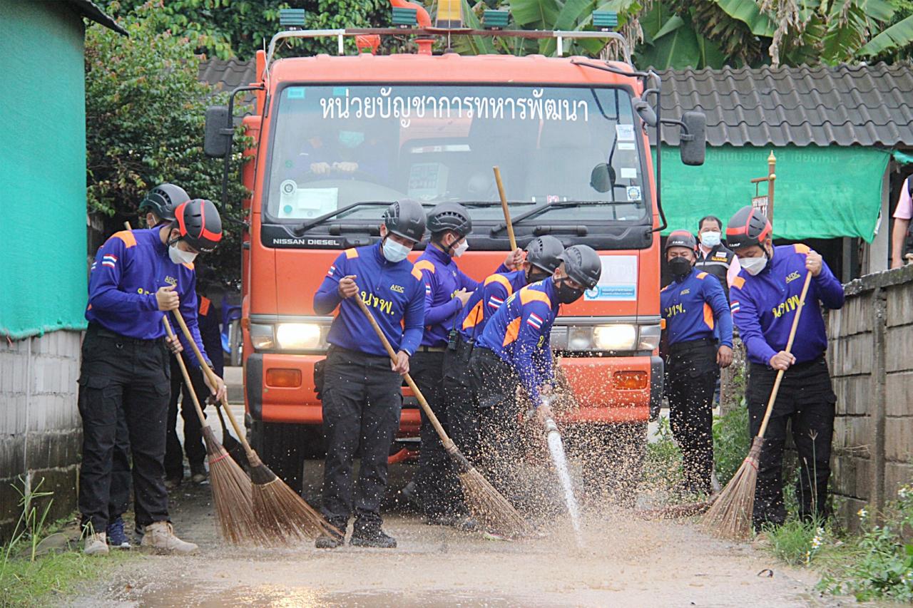 ส่วนที่ จ.เชียงใหม่ พ.อ.จิรายุ จิตธรรม ผบ.นพค.32 สนภ.3 นทพ. จัดชุดบรรเทาสาธารณภัย ร่วมกับ นายอำเภอแม่อาย, อบต.สันต้นหมื้อ, ผู้นำชุมชน และราษฎร ในตำบลสันต้นหมื้อ อ.แม่อาย จ.เชียงใหม่ ร่วมทำความสะอาดอาคารสถานที่ บ้านเรือนราษฎร และถนน ที่ได้รับความเสียหายจากกรณีน้ำป่าเอ่อล้นลำน้ำแม่นาวาง เข้าท่วมบ้านเรือนราษฎรในพื้นที่ตำบลสันต้นหมื้อ เพื่อให้คืนสภาพกลับมาใช้ชีวิตได้ตามปกติ ทั้งนี้ ยังได้สำรวจความเสียหาย ของพื้นที่เพื่อเตรียมให้การสนับสนุนในการบรรเทาความเดือดร้อนต่อไป ณ บ้านสันป่าเหียว หมู่ 7 ต.สันต้นหมื้อ อ.แม่อาย