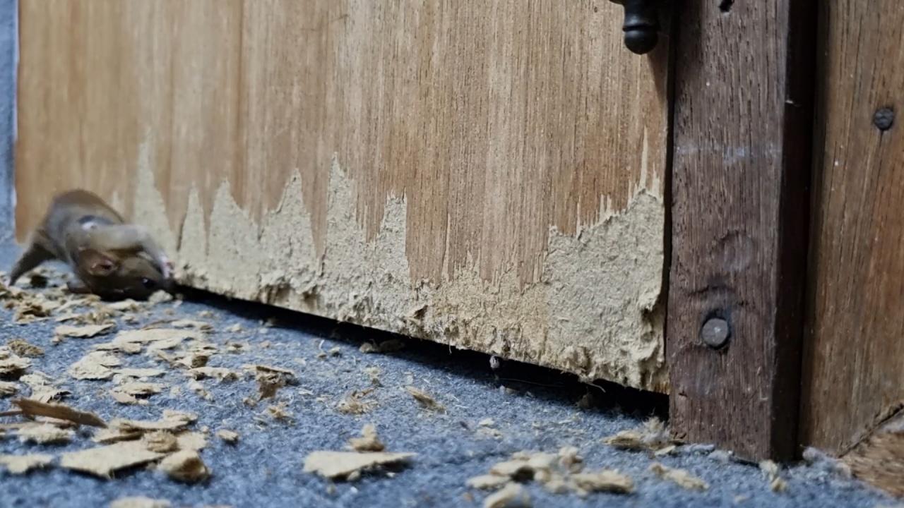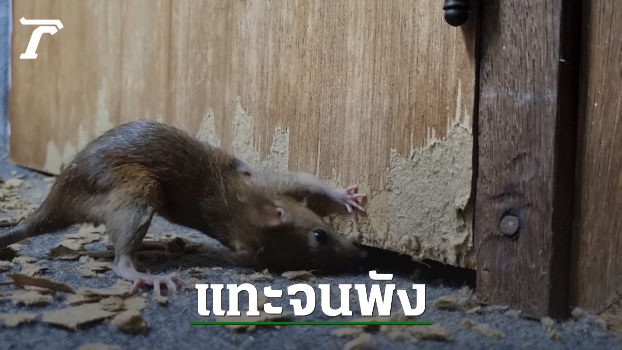 เจ้าของบ้านตั้งกล้อง ดูพฤติกรรมหนู ย่องกัด แทะประตูห้องนอนทั้งคืน จนเศษไม้อัดเกลื่อนไปทั่วบริเวณ สุดท้ายต้องควานหาตัวทั่วบ้าน ก่อนไล่พ้น