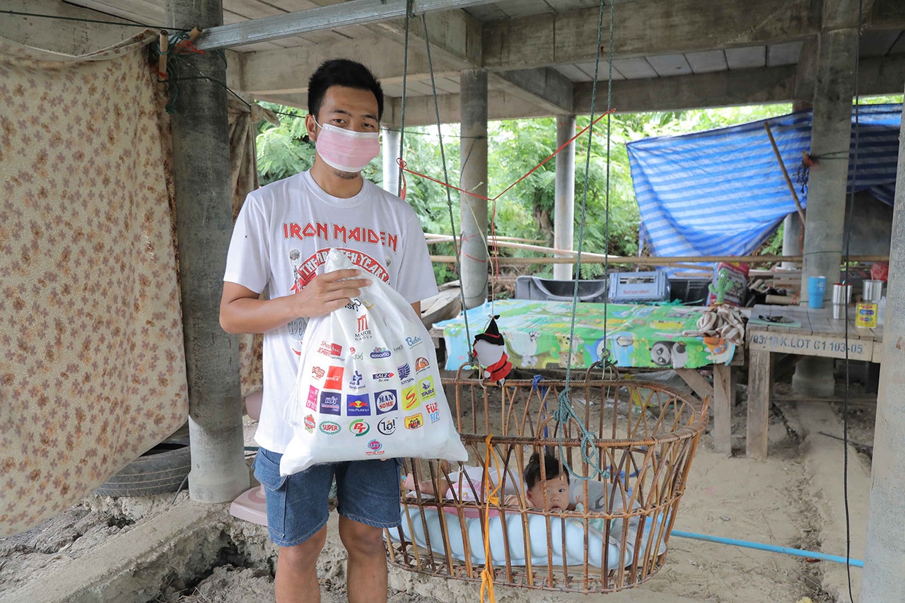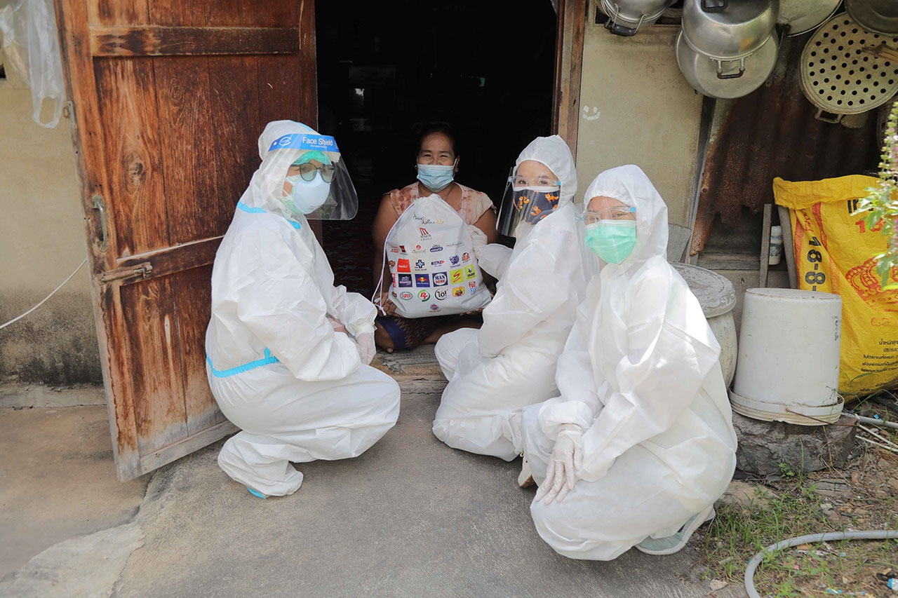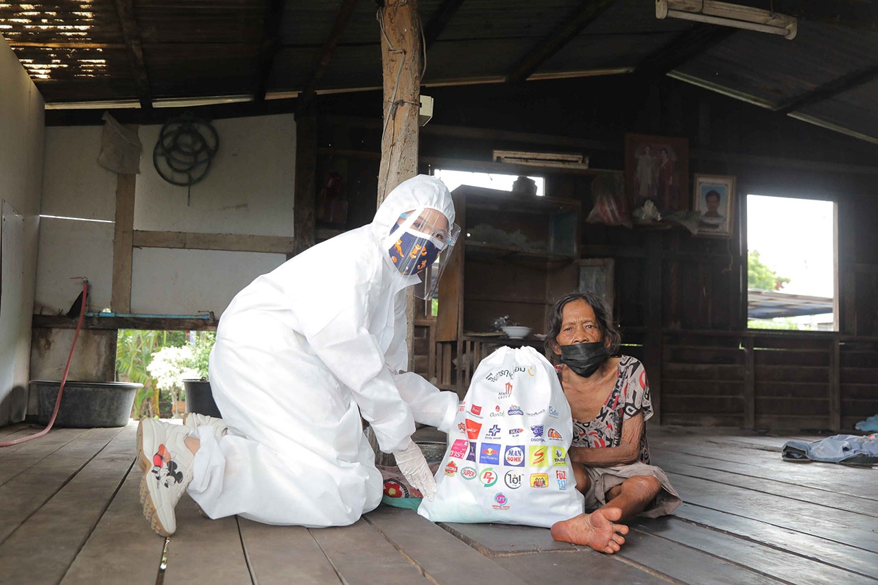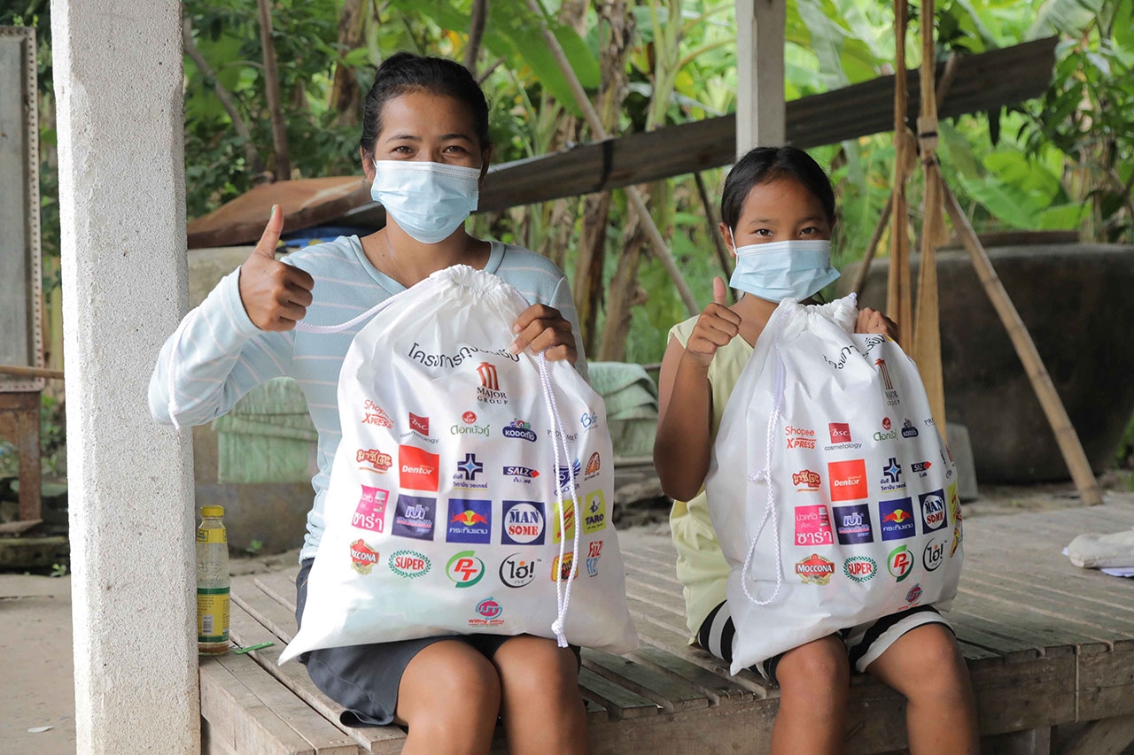 นอกจากนี้ ยังได้ลงพื้นที่แจกจ่ายถุงปันยิ้ม โดยได้รับการสนับสนุนจาก Shopee Express ในการอำนวยความสะดวกเรื่องการขนส่งถุงปันยิ้มไปยังชุมชน 70 ไร่ คลองเตย, ชุมชนวัดท่าตอ อำเภอมหาราช จ.อยุธยา และโรงพยาบาลพระนครศรีอยุธยา ให้กับพี่น้องที่ได้รับความเดือดร้อน และมีความเสี่ยงสูงในการติดเชื้อโควิด-19 ซึ่งภายในถุงปันยิ้ม ประกอบด้วยผลิตภัณฑ์สำหรับทำความสะอาด และดูแลสุขภาพอนามัย ได้แก่ ผงซักฟอกเปา ซิลเวอร์ นาโน XPERT, ยาสีฟันซอลส์ตรีผลา, น้ำยาบ้วนปากซอลส์เกลือสมุนไพรอายุรเวท สูตรข่อย และสูตรตรีผลา, แปรงสีฟันเดนเทอร์ โปร คลีน, ยาสีฟันเด็กโคโดโม สูตรอัลตร้า ชิลด์ ชนิดครีม รสสตรอเบอร์รี่, แปรงสีฟันเด็กโคโดโม รุ่นซอฟท์ แอนด์ สลิม, แป้งเด็กโคโดโม สูตรเจนเทิล ซอฟท์, ผลิตภัณฑ์ซักผ้าเด็กโคโดโม โอกานิคุ สูตรนิวบอร์น กลิ่นเนเชอรัล บลูมมิ่ง, ฮันนี่ วี บีเอสซี สวีท ฮันนี่ แบร์ แอลกอฮอล์ แฮนด์ เจล, ดอกบัวคู่ แชมพูสมุนไพร สูตรซีรั่ม, สบู่สมุนไพรดอกบัวคู่ แอนตี้แบคมังคุด, กระดาษทิชชู่จาก บมจ.โอสถสภา, เบบินี่ คูลแพด, โปรวาเมด แอสตาแซนทีน คลีนซิ่ง โฟม, ซาร่า พาราเซตามอล รวมทั้งเครื่องดื่ม อาหารกระป๋อง และขนม ได้แก่ น้ำดื่มจาก PTG, กระทิงแดงจีทูผสมโสมเอเชียสกัด, เครื่องดื่มเกลือแร่สปอนเซอร์ GO, เครื่องดื่มแมนซั่ม ผสมคอลลาเจน, ไฮ่ เครื่องดื่มผสมวิตามินซี 200%, ยันฮี วิตามิน วอเตอร์, ดอกบัวคู่เครื่องดื่มรังนกแท้สำเร็จรูป, ปลากระป๋องตราสามแม่ครัว, มันฝรั่งกรอบ ตรา ปาปริก้า, ทาโร ไลท์, มาชิตะฟันขนมข้าวโพดอบกรอบ, กาแฟมอคโคน่า 3 in 1, ซุปเปอร์กาแฟ 3 in 1 และลูกอมกลิ่นลิ้นจี่ ตราฟุซฟิซ