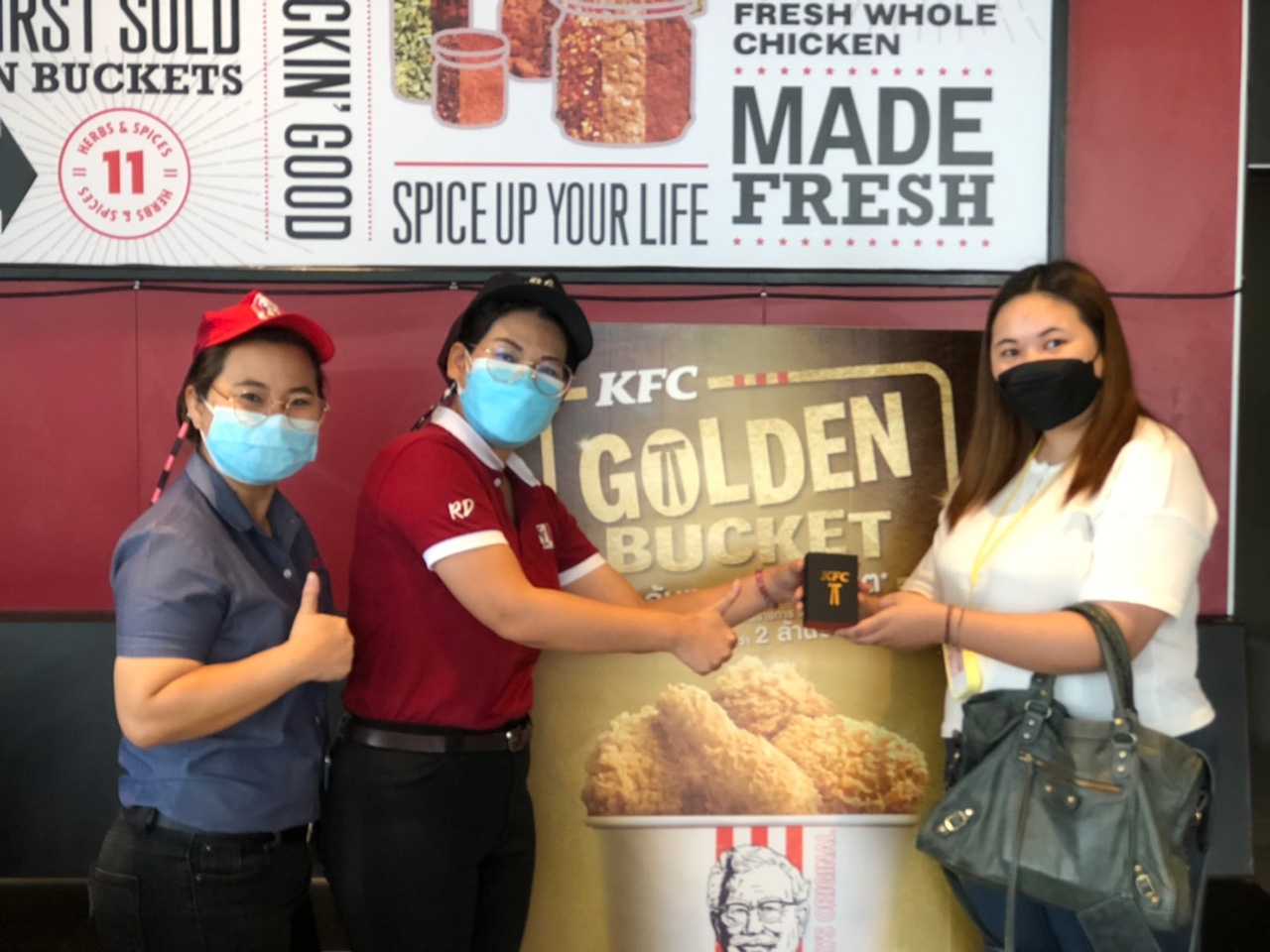 เคเอฟซีเห็นว่า ปีนี้เป็นปีที่หนักหน่วงของคนไทยทุกคน ดังนั้นในเดือนพิเศษที่เป็นเดือนเกิดของผู้พัน เคเอฟซีจึงจัดแคมเปญ Golden Bucket แจกทองและของรางวัลอื่นๆ อีกมากมาย เพื่อมอบความสุขและรอยยิ้มให้คนไทย โดยกิจกรรมเริ่มตั้งแต่ 26 สิงหาคม 2564 จนถึง 29 กันยายน 2564