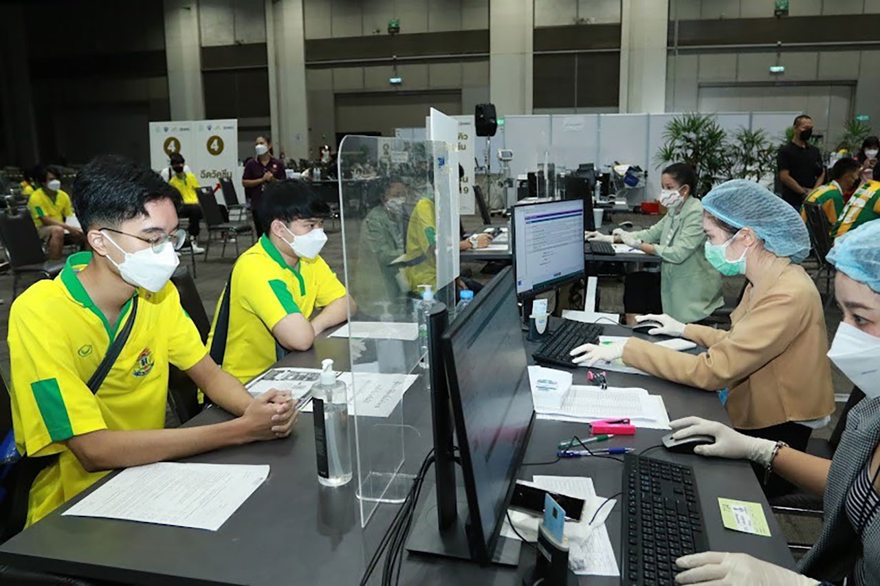 ที่หน่วยความร่วมมือบริการฉีดวัคซีนโควิด-19 รอยัล พารากอน ฮอลล์ ห้างสยามพารากอน สายวันที่ 7 ต.ค. นายสุทธิชัย จรูญเนตร ที่ปรึกษารัฐมนตรีว่าการกระทรวงศึกษาธิการ พร้อมด้วยนายวัลลพ สงวนนาม รองเลขาธิการคณะกรรมการการศึกษาขั้นพื้นฐาน นายสุทิน แก้วพนา รองปลัดกระทรวงศึกษาธิการ นายกำพล วิลยาลัย รองผู้อำนวยการโรงเรียนเทพศิรินทร์ เดินทางไปตรวจเยี่ยมและให้กำลังใจนักเรียนชั้น ม.ปลาย โรงเรียนเทพศิรินทร์ ที่เข้ารับการฉีดวัคซีนไฟเซอร์ มี โรงพยาบาลกรุงเทพ ร่วมกับ กทม.เป็นผู้ดำเนินการ ผลการฉีดไม่มีนักเรียนได้รับผลกระทบจากอาการข้างเคียงแต่อย่างใด.
