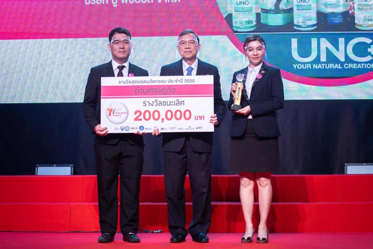 สำหรับผลิตภัณฑ์ UNC Calcium Plus ได้รับรางวัลนวัตกรรมแห่งชาติเมื่อปี 2563 ถือเป็นผลิตภัณฑ์แคลเซียมที่ร่างกายดูดซึมได้ดี โดยกระบวนการผลิตจากธรรมชาติด้วยการนำวัสดุเหลือใช้จากการแปรรูปปลาทะเลมาเพิ่มมูลค่า และพัฒนาเป็นนวัตกรรม มีคุณสมบัติในการเสริมสร้างและซ่อมแซมกระดูกและฟันที่สึกหรอและที่สำคัญไม่มีผลต่อกระบวนการย่อยอาหาร ทำให้ไม่เกิดอาการท้องอืดหรือท้องผูกจนได้รับทุนวิจัยเพิ่มเติมในระดับเซลล์ร่วมกับศูนย์เชี่ยวชาญเฉพาะทางทรงฤทธิ์ชีวภาพเพื่อนวัตกรรมทางคลินิก จุฬาลงกรณ์มหาวิทยาลัย จากสำนักงานพัฒนาวิทยาศาสตร์ วิจัย ว่าเป็น UNC แคลเซียมที่สามารถกระตุ้นการเจริญเติบโตของเซลล์กระดูกต้นกำเนิด และไม่เป็นพิษต่อเซลล์เมื่อได้รับสารสกัดในระยะยาว