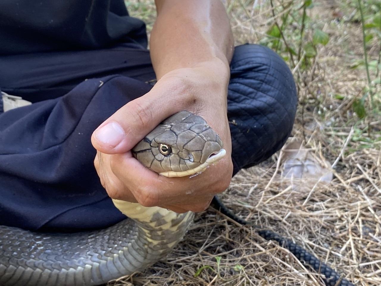 จากการตรวจสอบ พบงูจงอางตัวดังกล่าว เป็นงูป่าโตเต็มไวยาวประมาณ 4 เมตร น้ำหนักราว 6-8 กก. มีสภาพแข็งแรงสมบูรณ์ จากนั้นจึงได้นำเข้าเก็บภายในกล่องพลาสติกที่เตรียมมา เพื่อนำกลับไปพักฟื้นและสังเกตอาการ ก่อนนำไปปล่อยคืนป่าธรรมชาติที่ห่างไกลชุมชนต่อไป