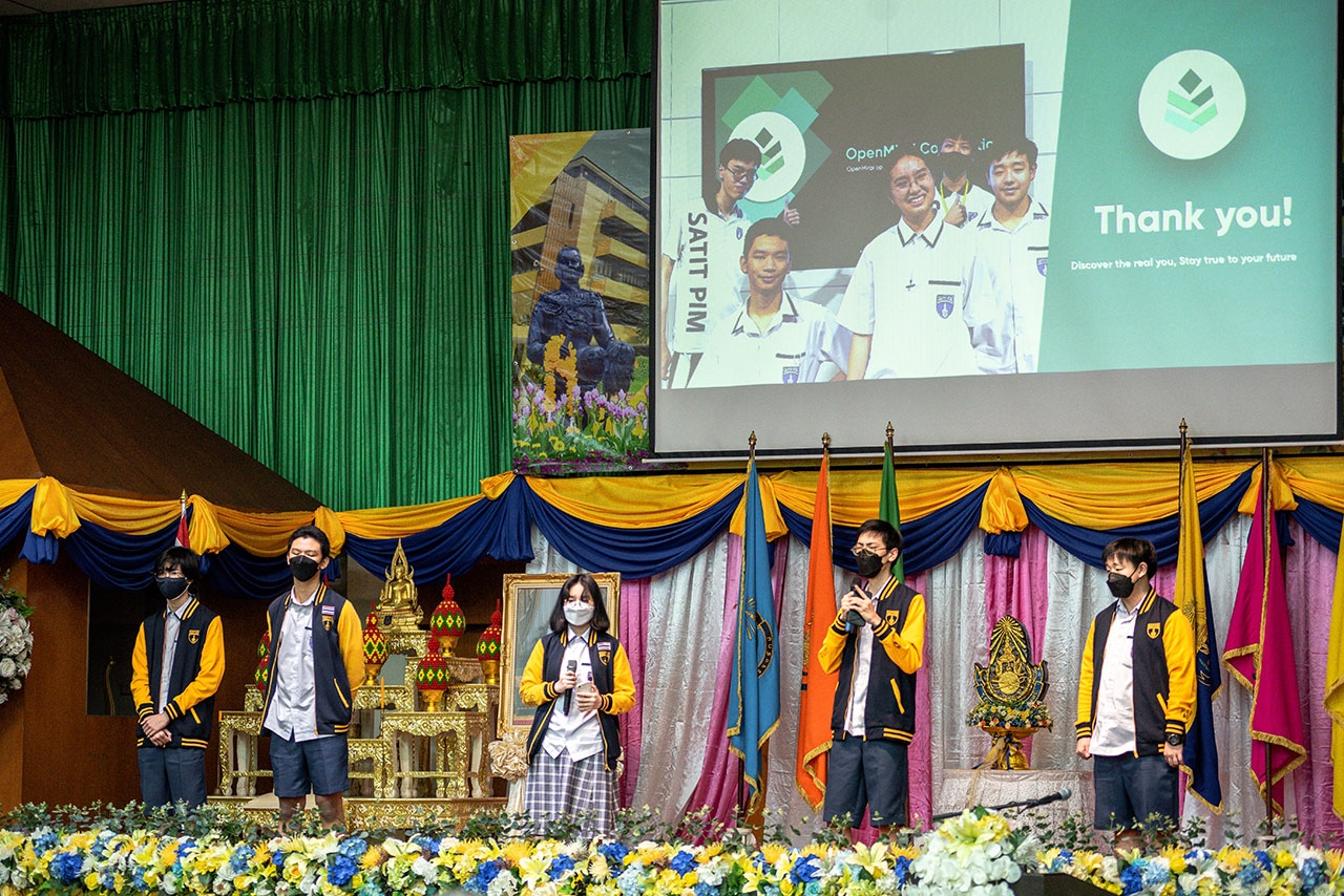 ทีม OpenMirai สาธิต พีไอเอ็ม โดยสมาชิกทั้ง 5 คน นักเรียนชั้นมัธยมศึกษาปีที่ 5 แผนการเรียนวิทย์-คณิต (Robotics and AI) ได้แก่ นายอภิภูมิ ชื่นชมภู, นายภาวิต ลิมปสุธรรม, นางสาวภิญฐ์สิตา เนียมอินทร์, นายปัณณ์ เภตรา และ นายณพสัญญ์ จีระวัฒนะนนท์ ได้รับเชิญร่วมงานและนำเสนอผลงานภาคภาษาอังกฤษในฐานะผู้ชนะเลิศจากการแข่งขัน Pitch@School 2021 บนเวที GEW 2021 ที่สำคัญนี้ ซึ่งได้รับเกียรติจาก Mr. Dato Steve Cheah ประธาน Global Entrepreneurship Network Thailand, (GEN Thailand) และหัวหน้าคณะสภาการทูต กลุ่มประเทศลุ่มน้ำโขง ผู้ร่วมงานกิตติมศักดิ์ อาทิ H.E. Mr. Jyri Järviaho เอกอัครราชทูตสาธารณรัฐฟินแลนด์ประจำประเทศไทย, H.E. Dato’ Jojie Samuel เอกอัครราชทูตมาเลเซียประจําประเทศไทย, H.E. Mr. Mohamed Jinah เอกอัครราชทูตสาธารณรัฐมัลดีฟส์ประจำประเทศไทย, H.E. Mr. Tumar Amarsanaa เอกอัครราชทูตมองโกเลียประจําประเทศไทย และ H.E. Mr. Ganesh Prasad Dhakal เอกอัครราชทูตสหพันธ์สาธารณรัฐประชาธิปไตยเนปาลประจำประเทศไทย รวมไปถึงผู้บริหาร กระทรวงศึกษาธิการ เจ้าหน้าที่ระดับสูงจากองค์การสหประชาชาติ, ผู้บริหารจากกลุ่มธุรกิจทั้งในและต่างประเทศ สมาชิกสภาการทูต เมื่อวันพุธที่ 10 พฤศจิกายน 2564 ณ โรงเรียนสุรศักดิ์มนตรี ถนนวิภาวดีรังสิต