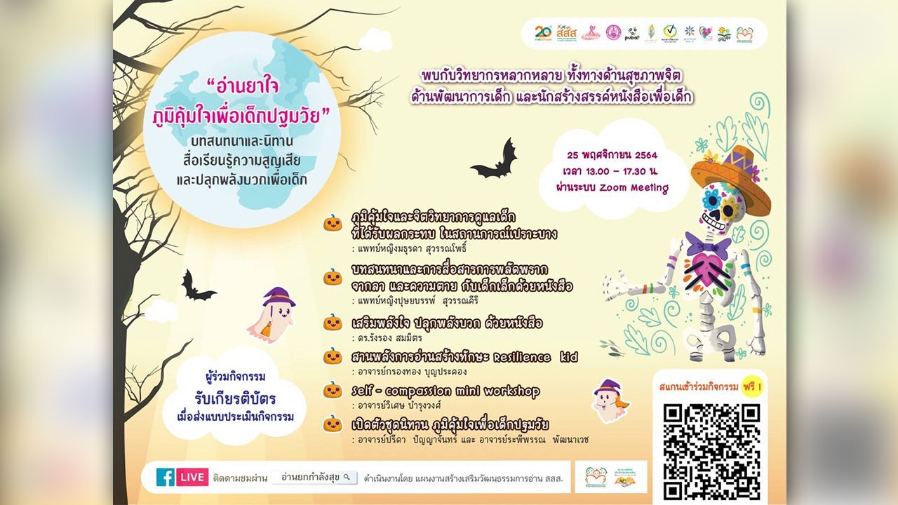 เมื่อวันที่ 25 พฤศจิกายน 2564 โดย ดร.สุปรีดา อดุลยานนท์ ผู้จัดการกองทุนสนับสนุนการสร้างเสริมสุขภาพ (สสส.) กล่าวว่า สถานการณ์การแพร่ระบาดของโควิด-19 ทำให้ประเทศไทยมีผู้เสียชีวิตกว่า 20,000 คน ที่สำคัญคือ สมาชิกในครอบครัว โดยเฉพาะเด็กปฐมวัย ที่ต้องสูญเสียปู่ ย่า ตา ยาย หรือพ่อแม่ ยังไม่สามารถรับมือกับสถานการณ์ที่ต้องสูญเสียได้อย่างเหมาะสม ส่งผลให้เด็กเกิดความกังวล ความเศร้า ความหวาดกลัว นำไปสู่ความเครียด เสี่ยงต่อปัญหาสุขภาพด้านจิตใจในระยะยาว สสส. เห็นความสำคัญของปัญหาที่เกิดขึ้น จึงร่วมมือกับ สถาบันราชานุกูล กรมสุขภาพจิต กระทรวงสาธารณสุข กรมกิจการเด็กและเยาวชน กระทรวงการพัฒนาสังคมและความมั่นคงของมนุษย์ สมาคมผู้จัดพิมพ์และผู้จำหน่ายหนังสือแห่งประเทศไทย (PUBAT) สมาคมนักเขียนแห่งประเทศไทย ธนาคารจิตอาสา มูลนิธิเครือข่ายมะเร็ง และภาคีเครือข่ายสร้างเสริมวัฒนธรรมการอ่าน จัดงาน “อ่านยาใจ : ภูมิคุ้มใจเพื่อเด็กปฐมวัย” บทสนทนาและนิทาน สื่อเรียนรู้ความสูญเสียและปลุกพลังบวกเพื่อเด็ก เพื่อพัฒนาขีดความสามารถของเด็กเล็กให้มีความพร้อมรับมือกับโรคอุบัติใหม่อย่างยืดหยุ่นและมีประสิทธิภาพ