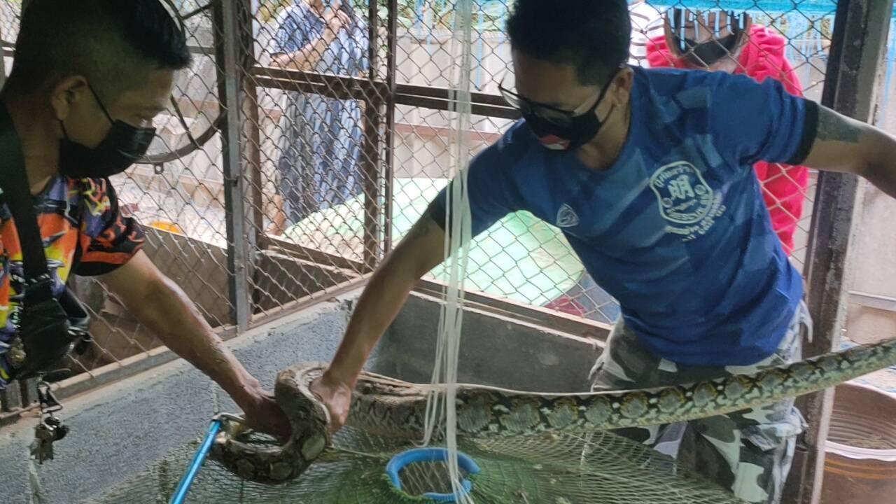 วันที่ 4 ธันวาคม 2564 ที่ สระบุรี เจ้าหน้าที่ศูนย์วิทยุกู้ภัยสว่างรัตนตรัยธรรมสถานสระบุรี ได้รับแจ้งขอความช่วยเหลือจากชาวบ้านว่า มีงูเหลือมขนาดใหญ่ เลื้อยเข้ามากินลูกไก่ชน ที่เลี้ยงไว้ในเล้าบริเวณด้านหลังบ้านหลังหนึ่งใน ต.ปากข้าวสาร อ.เมือง จ.สระบุรี ซึ่งเป็นร้านขายดอกไม้แห้ง และดอกไม้สด จึงได้แจ้งไปยังเจ้าหน้าที่ที่มีความสามารถจับสัตว์เลื้อยคลานประเภทงู เข้าไปทำการช่วยเหลือ