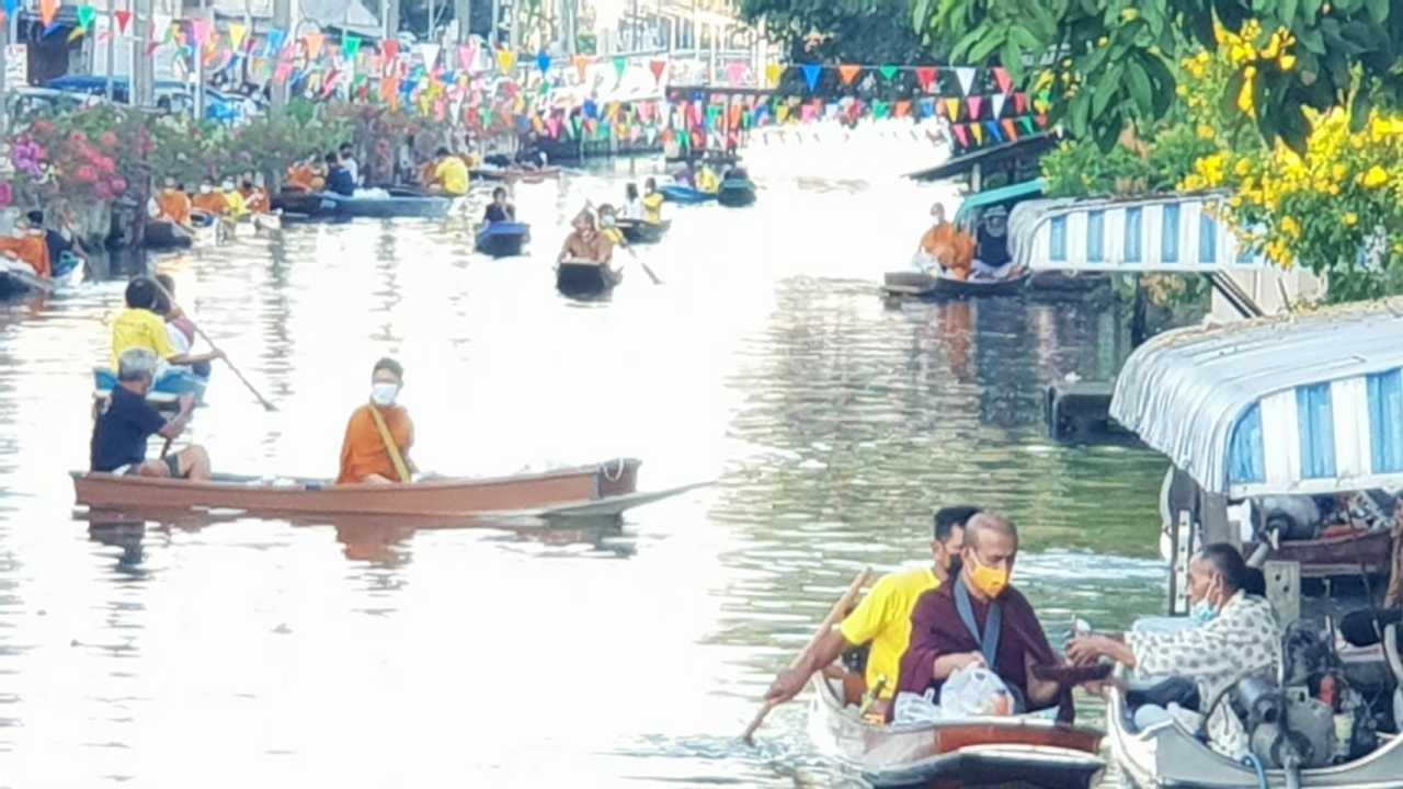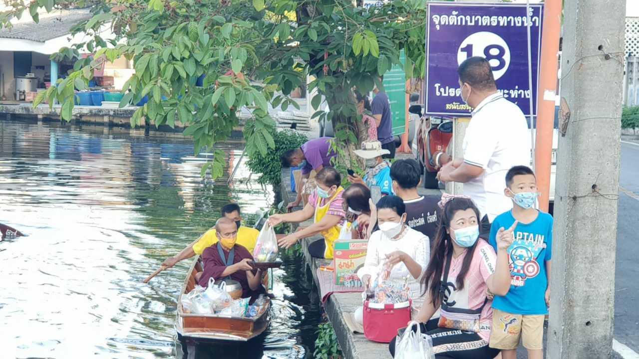 ที่บริเวณคลองภาษีเจริญ หน้าตลาดกระทุ่มแบน อ.กระทุ่มแบน จ.สมุทรสาคร กลุ่ม รักษ์กระทุ่มแบน ได้จัดกิจกรรมตักบาตรในธาราสืบชะตาคลองภาษีเจริญโดยมีท่านจันทร์ หรือสมณะเพาะพุทธ จันทเสฎโฐ แห่งพุทธสถานสันติอโศก นำพระสงฆ์จากวัดในพื้นที่อำเภอกระทุ่มแบน มาร่วมบิณฑบาตทางน้ำจากประชาชนในพื้นที่อำเภอกระทุ่มแบน
