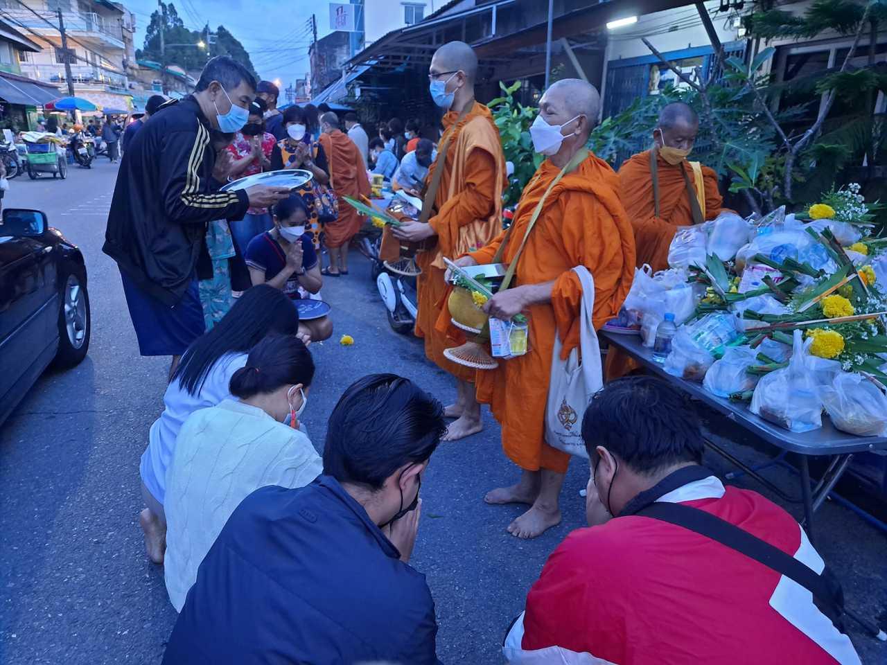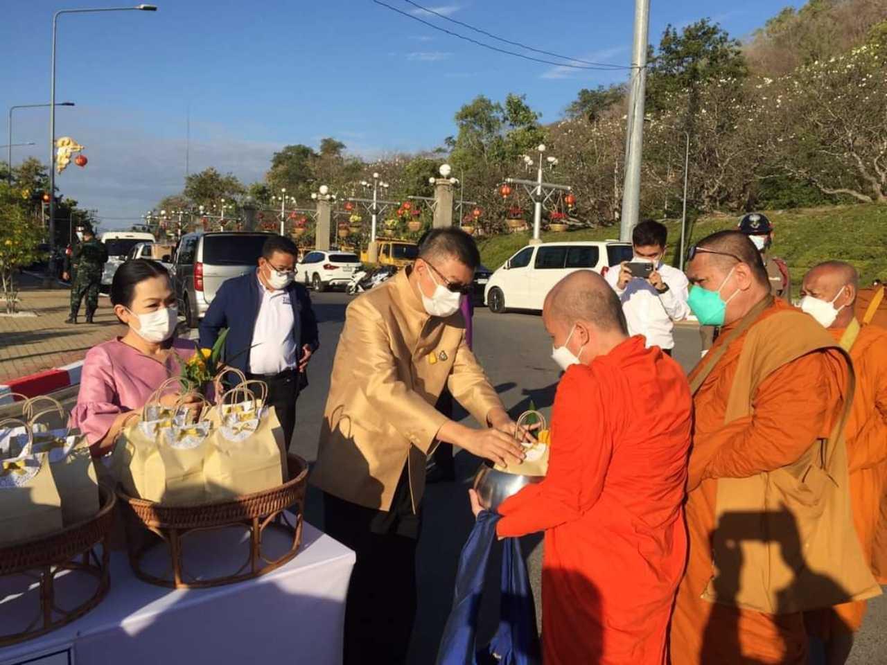 เมื่อเวลา 06.30 น.วันที่ 1 ม.ค. 65 ผู้สื่อข่าวรายงานว่า ที่บริเวณปากพนังริเวอร์ฟร้อนท์ ริมแม่น้ำปากพนังฝั่งตะวันออก อ.ปากพนัง จ.นครศรีธรรมราช นายขวัญชัย รอดมณี นายกเทศบาลเองปากพนัง พร้อมด้วยคณะผู้บริหาร สมาชิกสภา และพนักงานเทศบาล รวมทั้งประชาชนชาวอำเภอปากพนัง ซึ่งส่วนใหญ่มากันเป็นครอบครัว ร่วมกันตักบาตรข้าวสารอาหารแห้งพระภิกษุสงฆ์ เนื่องในวันขึ้นปีใหม่ 2565 ท่ามกลางมาตรการป้องกันการแพร่ระบาดไวรัสโควิด-19 อย่างเคร่งครัด ส่วน ประชาชน และนักท่องเที่ยว ก็ออกมาทำบุญตักบาตรตอนเช้ามืด ที่บริเวณถนนท่าชี อ.เมือง ซึ่งเป็นถนนสายวัฒนธรรมของจังหวัด