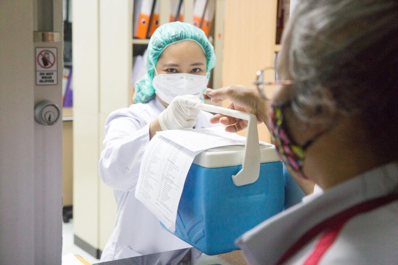 5. ส่งกลับ ณ จุดรับตัวอย่าง สามารถส่งเก็บและขนส่งตัวอย่างได้ที่อุณหภูมิห้อง ภายใน 6 ชั่วโมง หรืออุณหภูมิ 4 องศาเซลเซียส ภายใน 48 ชั่วโมง โดยจะใช้เวลาในการตรวจ 1,500 ตัวอย่าง ต่อ 48 ชั่วโมง