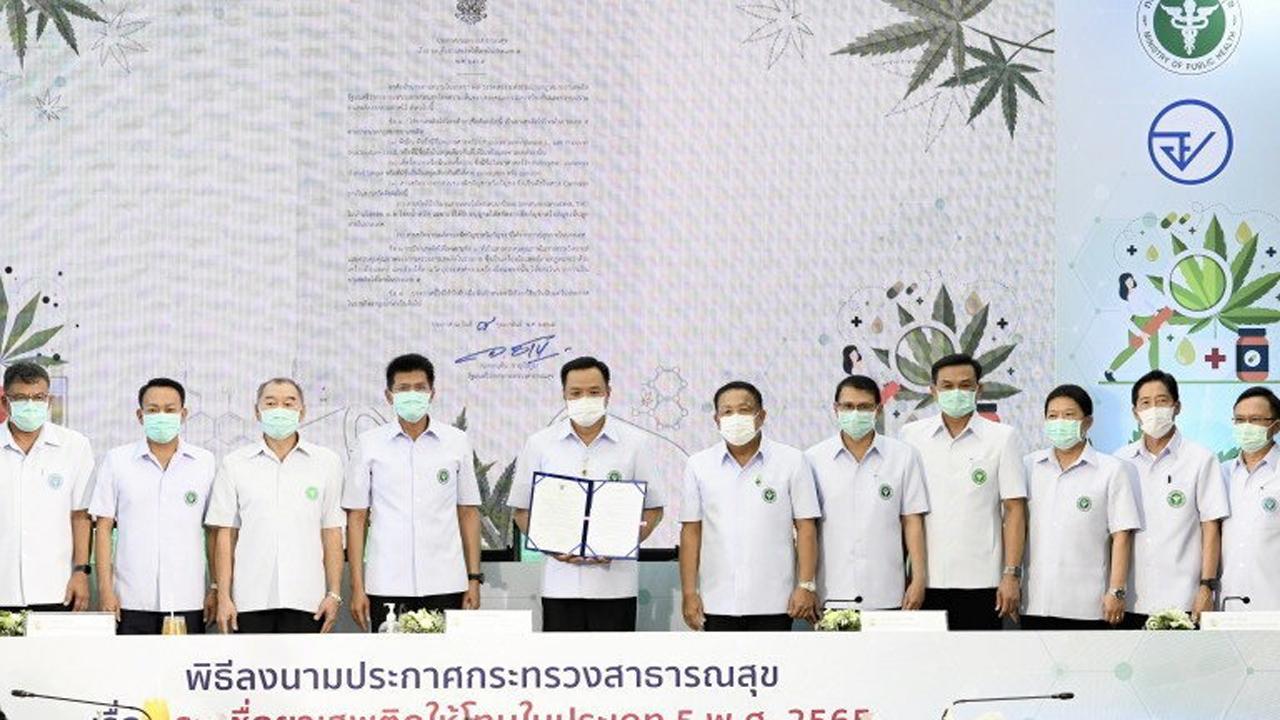 ที่กระทรวงสาธารณสุข เมื่อวันที่ 8 ก.พ. นายอนุทิน ชาญวีรกูล รองนายกรัฐมนตรีและ รมว.สาธารณสุข ได้ลงนามในประกาศกระทรวงสาธารณสุข เรื่องระบุชื่อยาเสพติดให้โทษประเภท 5 พ.ศ.2565 (ยส.5) อย่างเป็นทางการ หลังเสร็จสิ้นขั้นตอนนายอนุทินเปิดเผยว่า ถือเป็นหน้าประวัติศาสตร์การ ปลดกัญชาและกัญชงออกจากยาเสพติด เป็นจุดเปลี่ยน สำคัญให้ทุกคนเข้าถึงยาได้อย่างถูกต้อง เป็นประโยชน์ในการรักษาผู้ป่วย ไม่ต่างจากพืชสมุนไพรไทยชนิดอื่นๆ แต่ต้องอยู่ในการควบคุมโดยมีกฎหมายตีกรอบไว้ สามารถพูดให้เข้าใจได้ง่ายๆคือ ส่วนใดของกัญชาที่มีสารสกัด Tetrahydrocannabinol หรือ THC เกิน 0.2 เปอร์เซ็นต์ คือ ยาเสพติดที่ต้องควบคุม ประกาศนี้ จะมีผลบังคับใช้หลังประกาศราชกิจจานุเบกษาแล้ว 120 วัน การปลดล็อกครั้งนี้เพื่อให้สามารถใช้กัญชาได้ เน้นใช้ทางการแพทย์และสุขภาพ รวมทั้งการผลิตและ พัฒนาผลิตภัณฑ์ทางอุตสาหกรรมเพื่อสร้างรายได้ ให้ประชาชนรวมถึงการศึกษาวิจัย