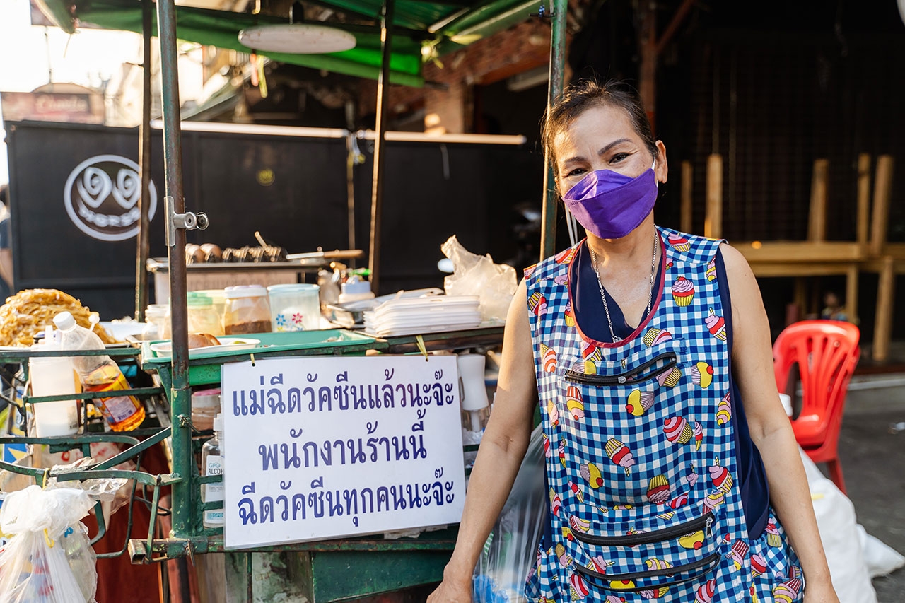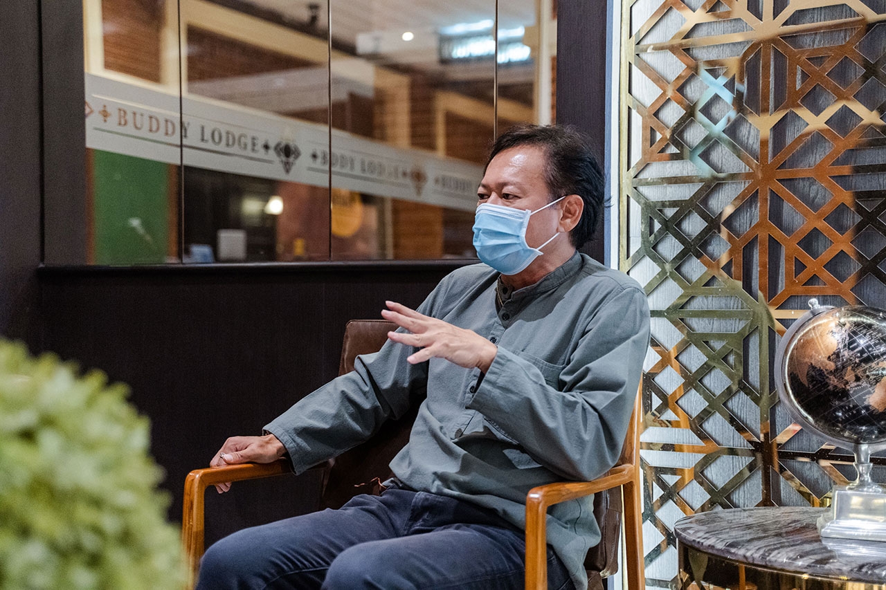 “พอตอนนี้ ศบค. อนุญาตให้เปิดถึง 5 ทุ่ม ถนนข้าวสารก็กลับมาเปิดแล้ว 40% จากเดิมร้านอาหารที่ขายเครื่องดื่ม 70% อาหาร 30% แต่จากนโยบาย ศบค. ที่ออกมา ผู้ประกอบการก็พยายามปรับร้านตัวเองให้มีอาหารมากขึ้น ปฏิบัติตามนโยบายของ ศบค. ทุกเรื่อง ทั้งเรื่องเว้นระยะห่าง เรื่องความปลอดภัย เรื่องฉีดวัคซีนเราก็ทำอยู่แล้ว แต่เราติดเรื่องของเวลาการขายเครื่องดื่ม เพราะถ้าเป็นร้านอาหารธรรมดามันคือฟู้ด มันไม่ใช่เอนเตอร์เทนเมนต์ที่จำเป็นต้องมีเสียงเพลง เพราะมันคือความสนุกสนาน ส่วนโรงแรมเปิดแค่บางโรงแรมเท่านั้น เพราะเห็นนักท่องเที่ยวที่นั่งกันอยู่ตอนนี้เป็นนักท่องเที่ยวที่เข้ามาเที่ยว ไม่ได้พักที่นี่ แต่อยากมาชมบรรยากาศข้าวสารว่าเป็นยังไง สมัยก่อนคือนักท่องเที่ยวสองหมื่นคนอยู่แถวนี้ทั้งหมดเลย”