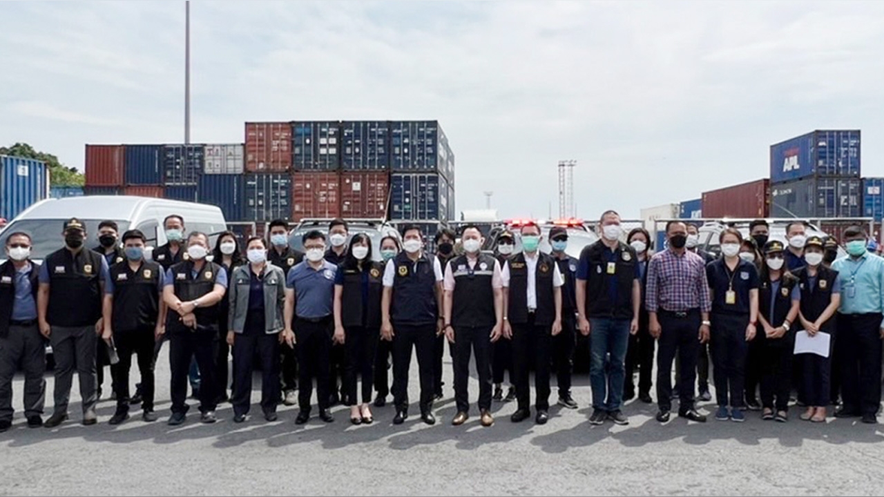 วันนี้ (23 มี.ค. 65) เวลา 14.00 น. พ.ต.อ.ณรัชต์พล เลิศรัชตะปภัสร์ ผู้อำนวยการสำนักงานศุลกากรท่าเรือกรุงเทพ นางสาววรรณา ผู้อุตส่าห์ รักษาการในตำแหน่งผู้เชี่ยวชาญด้านเทคนิคการตรวจสอบสินค้า พร้อมด้วยการท่าเรือแห่งประเทศไทย กองบัญชาการตำรวจปราบปรามยาเสพติด และกองสืบสวนและปราบปราม กรมศุลกากร ร่วมกันปล่อยแถวตามยุทธการ “สทก. ท้ารบสยบไพรี” ในการปิดล้อมและตรวจค้นหีบห่อรวมทั้งยานพาหนะที่เข้ามาในเขตท่าเรือกรุงเทพเพื่อเป็นการป้องกัน กดดัน และปราบปรามเครือข่ายการลักลอบลำเลียงยาเสพติด อันเป็นการปกป้องสังคมและผู้ประกอบการที่มีความสุจริต ตลอดจนสร้างความเชื่อมั่นให้กับประเทศในเวทีการค้าระหว่างประเทศ ก่อให้เกิดประโยชน์สูงสุดแก่ประชาชนและประเทศตามนโยบายของรัฐบาลและกรมศุลกากร