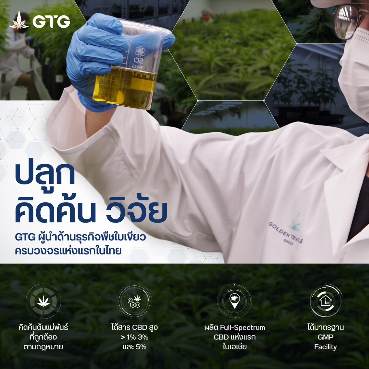 โดยใช้เทคโนโลยีการปลูกและสกัดแบบ High-Value Agriculture ที่มีคุณภาพและปลอดภัยระดับมาตรฐานสากล ทำให้มีการใช้สาร CBD ในวงการแพทย์ในหลายประเทศเพื่อรักษาผู้ป่วย สาร CBD แต่ละสายพันธุ์จะมีปริมาณแตกต่างกัน อย่างกัญชงสายพันธุ์ ‘Raksa’ (รักษา) ของเรามีสาร CBD มากถึง 15.8% และมีสาร THC ไม่เกิน 0.2% ทำให้สามารถสกัดสาร CBD ที่มีสรรพคุณสูงมากสามารถนำไปใช้ประกอบอาหาร เครื่องดื่ม เครื่องสำอาง เวชภัณฑ์ยารักษาโรค และการแพทย์ได้ ข้อมูลเพิ่มเติมที่ www.gtg.co.th