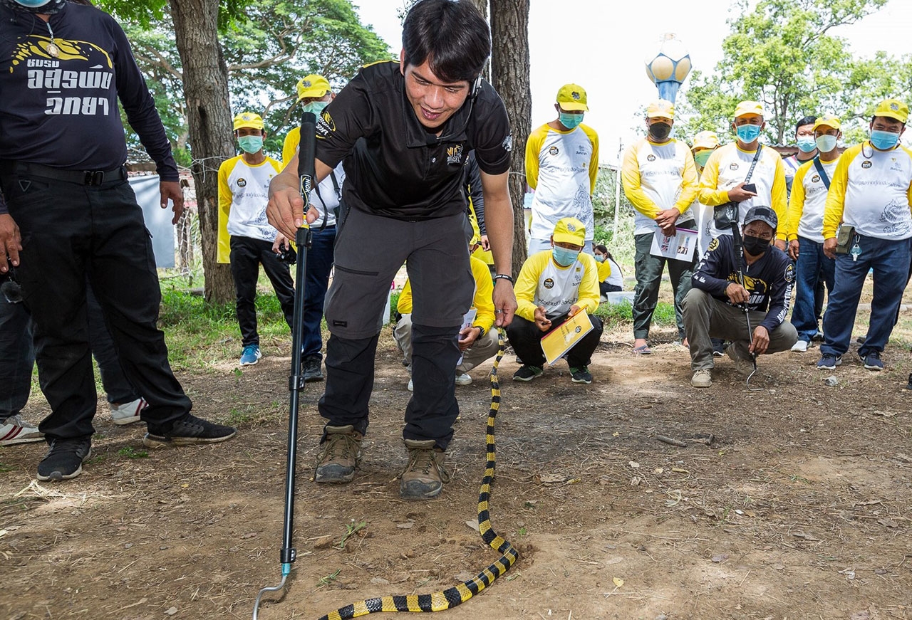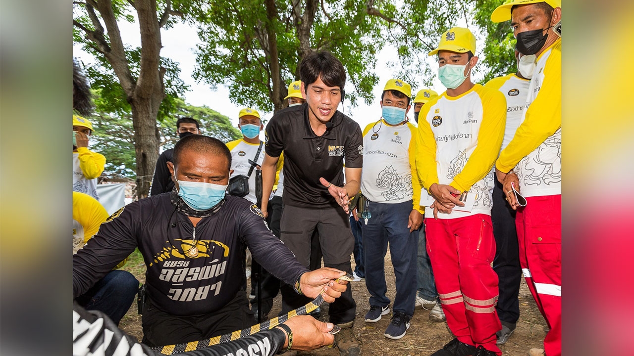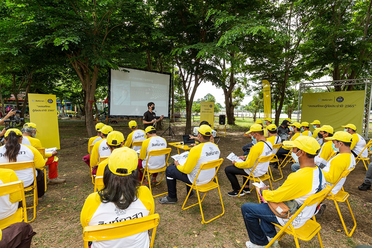 สิงห์อาสา โดย มูลนิธิพระยาภิรมย์ภักดี และ บริษัท บุญรอดบริวเวอรี่ จำกัด ร่วมกับ ทีมงานอสรพิษวิทยา นำทีมโดย คุณนิรุทธ์ ชมงาม ผู้เชี่ยวชาญด้านงูและผู้ก่อตั้งเพจ Nick wildlife จัด “อบรมกู้ภัยประจำปี 2565” หลักสูตร "อสรพิษวิทยา" ให้แก่เครือข่ายกู้ภัยสิงห์อาสาทั่วประเทศ เพื่อพัฒนาศักยภาพ เสริมสร้างทักษะความรู้ และความปลอดภัยในการจับงูให้กับกลุ่มอาสากู้ภัยในการปฏิบัติหน้าที่ช่วยเหลือประชาชนโดยเฉพาะอย่างยิ่งในช่วงฤดูฝนที่มักพบเจองูตามบ้านเรือนจำนวนมาก โดยจะจัดอบรมต่อเนื่องกระจายไปยังพื้นที่ที่เกิดน้ำท่วมบ่อยครั้งในแต่ละภูมิภาคทั่วประเทศ ได้แก่ จ.นครราชสีมา จ.พิษณุโลก และจ.นครศรีธรรมราช โดยล่าสุดเมื่อวันที่ 8 มิ.ย. 65 ได้เริ่มเปิดครั้งแรกที่โรงเรียนวัดเชิงท่า ต.เกาะเกิด อ.บางปะอิน จ.พระนครอยุธยา มีอาสาสมัครกู้ภัยจากภาคกลางจำนวน 40 คน เข้าร่วมการอบรม