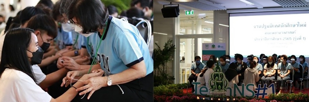 นอกจากนี้คณะพยาบาลศาสตร์ ร่วมกับ สำนักกิจการนักศึกษา สืบสานประเพณีไทยจัดกิจกรรม “บายศรีสู่ขวัญ รับศิษย์เข้าบ้าน” และกิจกรรม “เดินเทียน” เพื่อสร้างพลัง ขวัญกำลังใจ เชื่อมสัมพันธ์ถ่ายทอดความรัก ความอบอุ่น ความผูกพันระหว่างคณาจารย์และศิษย์ให้หลอมรวมเป็นหนึ่งเดียวกัน เมื่อวันที่ 29 พฤษภาคม 2565 นับเป็นจุดเริ่มต้นการต้อนรับนักศึกษาพยาบาลรุ่นที่1 พร้อมด้วยการแนะนำอาจารย์ที่ปรึกษา เสริมกิจกรรมรับน้องสร้างสรรค์ในบรรยากาศสนุกสนาน สร้างความประทับใจให้กับนักศึกษาใหม่ที่ได้เข้าร่วมกิจกรรมในครั้งนี้ โดยการจัดงานเป็นไปภายใต้มาตรการป้องกันและควบคุมการแพร่ระบาดของ COVID-19