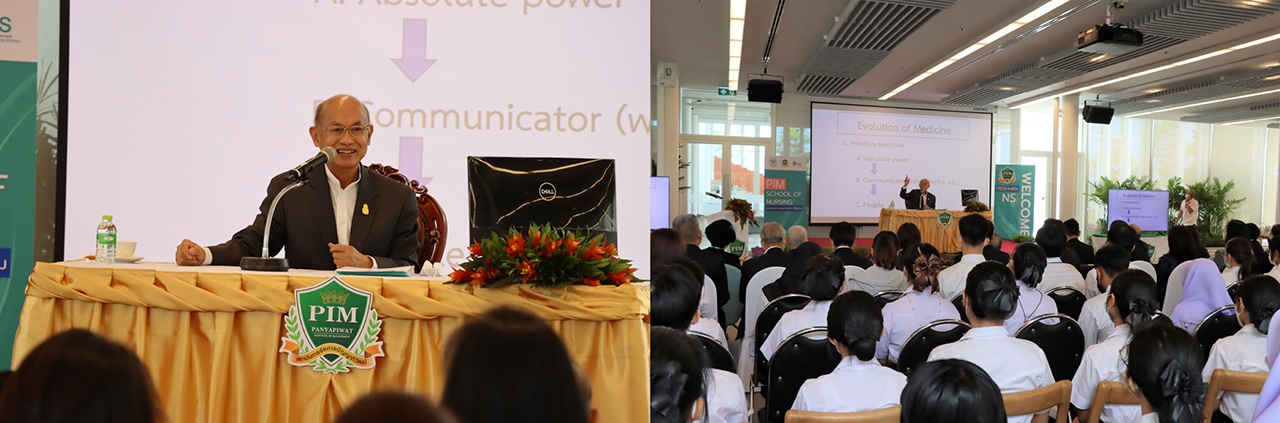 คณะพยาบาลศาสตร์ (School of Nursing) สถาบันการจัดการปัญญาภิวัฒน์ (พีไอเอ็ม) จัดงานปฐมนิเทศนักศึกษาพยาบาลปีที่ 1 รุ่นที่ 1 ปีการศึกษา 2565 เพื่อต้อนรับและให้โอวาทแก่นักศึกษาใหม่หลักสูตรพยาบาลวิชาชีพ 4 ปี และหลักสูตรพยาบาลวิชาชีพ 2.5 ปี จำนวน 136 คน โดยได้รับเกียรติจาก ศาสตราจารย์เกียรติคุณ นายแพทย์เกษม วัฒนชัย ประธานในงาน กล่าวปาฐกถาพิเศษ พร้อมด้วย คุณก่อศักดิ์ ไชยรัศมีศักดิ์ ประธานกรรมการบริหาร บริษัท ซีพี ออลล์ จำกัด (มหาชน), คุณวิเชียร จึงวิโรจน์ กรรมการบริหาร บริษัท ซีพี ออลล์ จำกัด (มหาชน), แพทย์หญิงจามรี เชื้อเพชระโสภณ Head of Operation Planning บริษัท ซีพี เมดิคัล เซ็นเตอร์ จำกัด, อาจารย์พรวิทย์ พัชรินทร์ตนะกุล รองอธิการบดีอาวุโสฝ่ายวิชาการ, คุณสยาม โชคสว่างวงศ์ รองอธิการบดีอาวุโส สายงานบริหาร ศาสตราจารย์เกียรติคุณ ดร.วิภาดา คุณาวิกติกุล รองอธิการบดี ฝ่ายวิทยาศาสตร์สุขภาพ และรักษาการคณบดีคณะพยาบาลศาสตร์ สถาบันการจัดการปัญญาภิวัฒน์ และผู้บริหาร คณาจารย์ ร่วมงานอย่างอบอุ่น เมื่อวันจันทร์ที่ 30 พฤษภาคม 2565 ณ สถาบันการจัดการปัญญาภิวัฒน์ วิทยาเขตอีอีซี (PIM EEC) จังหวัดชลบุรี