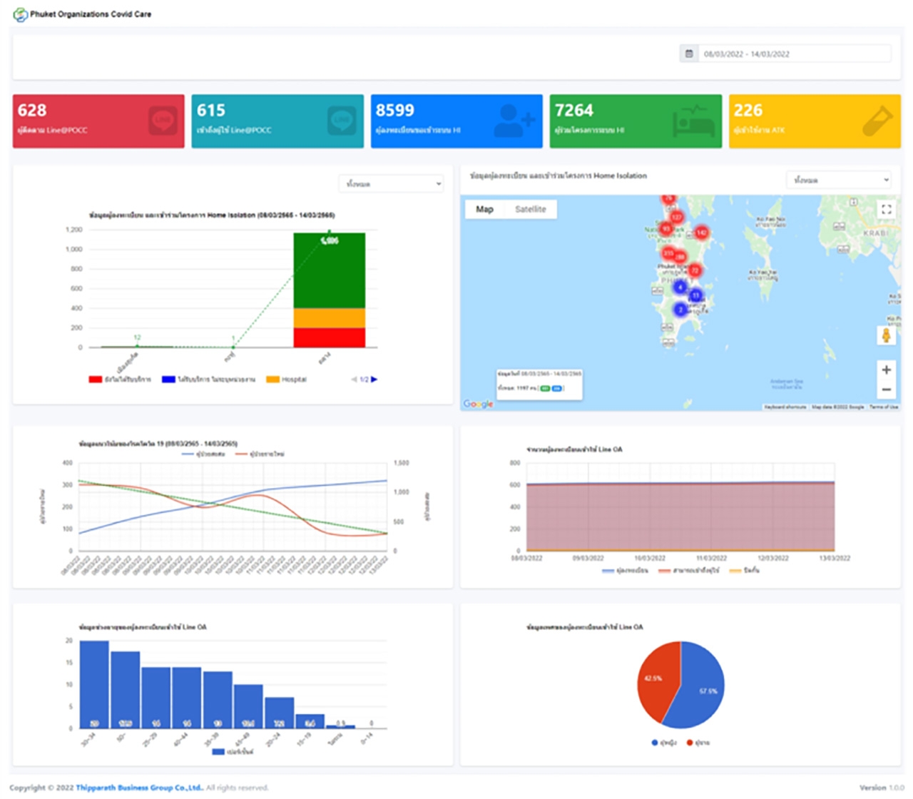 โดยแพลตฟอร์ม POCC มีการเชื่อมต่อกับการบริการด้านสาธารณสุขในหลายด้านที่เกี่ยวเนื่องกับการควบคุมการแพร่ระบาด เช่น แบบประเมินความเสี่ยงตนเอง การขอรับชุดตรวจ ATK การขอรับบริการ Home Isolation (การแยกกักตัวที่บ้าน) การให้ข้อมูลข่าวสาร ความรู้ และสร้างความเข้าใจแก่ประชาชน เกี่ยวกับสถานการณ์โรคโควิด-19 ในพื้นที่จังหวัดภูเก็ต นอกจากนี้ ยังสามารถปรับเปลี่ยนหรือเพิ่มเติมการให้บริการสาธารณสุขอื่นๆ ที่มีต่อไปในอนาคต เพื่อเพิ่มประสิทธิภาพและความคล่องตัวในการบริหารจัดการข้อมูลกลางของหน่วยงานที่เกี่ยวข้อง ปัจจุบันแพลตฟอร์ม POCC เปิดให้บริการทั้งในส่วนของภาคประชาชน เจ้าหน้าที่สาธารณสุขผู้ปฏิบัติการในพื้นที่ และเจ้าหน้าที่ระดับสูงของจังหวัด”