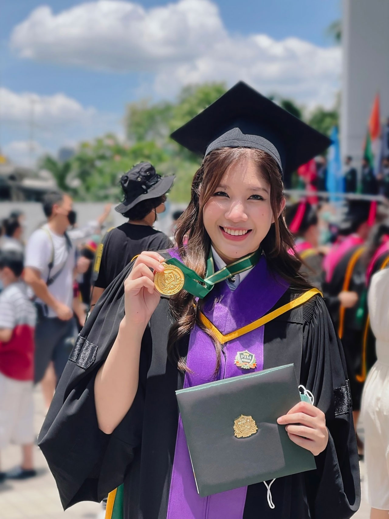 “รู้สึกตื่นเต้นมากสำหรับพิธีประสาทปริญญาบัตร และรู้สึกดีใจที่ได้เจอกับเพื่อนๆ ทุกคน รวมทั้งอาจารย์และเจ้าหน้าที่ PIM International College ที่คอยช่วยเหลือตลอดเวลาที่อยู่พีไอเอ็ม สำหรับการศึกษารูปแบบ Work-based Education เป็นประโยชน์ และสามารถนำไปปรับใช้กับการทำงานในชีวิตจริงได้ดี เพราะไม่เพียงแค่ส่งเสริมการคิดอย่างมีหลักการเพื่อรับมือกับปัญหาได้แล้วนั้น ยังรวมถึงวิธีที่จะสามารถทำงานได้เร็วขึ้น และทำงานร่วมกับผู้อื่นได้ดีอีกด้วยนอกจากนี้ประสบการณ์ที่ประทับใจระหว่างเรียนคือการมีโอกาสไปเยี่ยมชมดูงานบริษัทพันธมิตรของพีไอเอ็ม ทำให้ได้เรียนรู้วัฒนธรรมของบริษัทนั้นๆ เรียนรู้เก็บเป็นประสบการณ์นำมาปรับใช้กับสถานการณ์จริงได้”