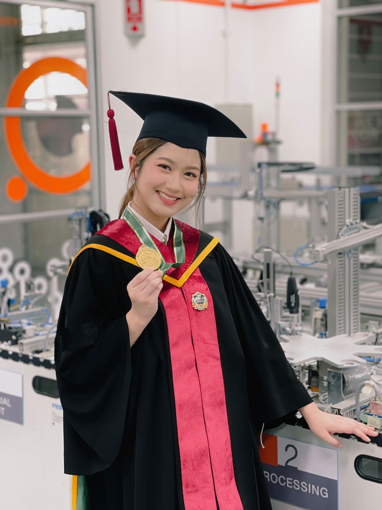 “รู้สึกภูมิใจในการกลับมารับปริญญาครั้งนี้เหมือนได้ย้อนเห็นถึงความพยายามตลอดการเรียนและการฝึกงานระยะเวลาสี่ปีที่ผ่านมาเป็นความสำเร็จแรกของชีวิตรู้สึกเหมือนได้กลับมาอยู่ในครอบครัวที่อบอุ่นเหมือนเดิม สำหรับการเรียนรูปแบบ Work - based Education เป็นระบบการเรียนที่ทำให้ได้เรียนทฤษฎีจากในห้องเรียนและได้นำไปปฏิบัติกับสถานประกอบการจริง ได้เรียนรู้จริง ทำจริง แก้ปัญหาจริง ทำให้นักศึกษามีความพร้อมที่ออกไปทำงานได้จริงและมีคุณภาพ ด้วยการเป็น University of Networking จึงได้โอกาสจากสถาบันฯ และคณะไปศึกษาแลกเปลี่ยนโครงการ “Cheng Shiu University New Southbound Talent Development Program” ที่ประเทศไต้หวัน และช่วงระหว่างเรียนได้เข้าร่วมแข่งขันการประกวดผลงานสิ่งประดิษฐ์นวัตกรรมสายอุดมศึกษาจากสำนักงานคณะกรรมการวิจัยแห่งชาติ (วช.) ตั้งแต่เรียนปี1 ถึงปี4 และเข้าโชว์ผลงานระดับประเทศในงาน Startup Thailand 2018 ซึ่งตลอดระยะเวลาการเรียนที่ IAM@PIM 4 ปี ได้ทั้งความรู้ในห้องเรียนจากอาจารย์ได้ประสบการณ์จากการเข้าร่วมงานระดับประเทศและต่างประเทศ ได้ฝึกงานทุกปีได้นำความรู้ในห้องเรียนมาใช้กับการทำงานจริงร่วมกับสถานประกอบการจริงและปี 4 ที่คณะจะให้ฝึกงานระยะเวลา 6 เดือนพร้อมกับต้องทำ Internship Senior Project เพื่อนำเสนอกับผู้บริหารระดับสูงของสถานประกอบการจริงเป็นประสบการณ์ที่ฝึกให้ได้นำความรู้จากการเรียนและการฝึกงานไปใช้ได้จริงอย่างสมบูรณ์แบบ ทุกอย่างเป็นอาวุธติดตัวหลังจากเรียนจบทำให้มีความพร้อมทำงานได้จริง และสิ่งที่ทางสถาบันฯ ปลูกฝังมาโดยตลอดคือการเป็นคนคิดเป็น ทำเป็น เรียนเป็นและต้องเป็นคนดีตามหลักสามประโยชน์ของเครือฯ คือประโยชน์ต่อประเทศชาติ ประชาชน และบริษัทเป็นลำดับสุดท้าย”