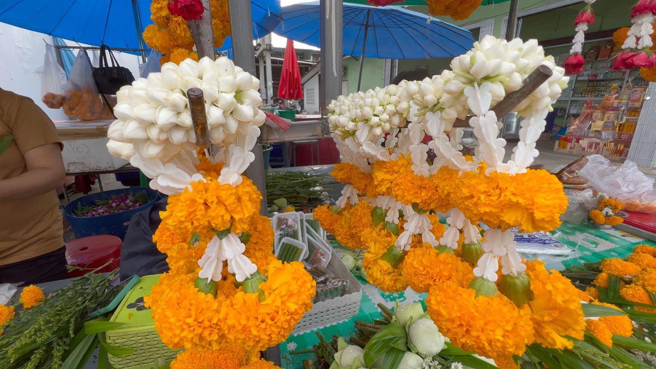 เมื่อวันที่ 10 ส.ค. 65 ที่ตลาดสดริมแม่น้ำสะแกกรัง อำเภอเมืองอุทัยธานี นางสาวปราณี ยิ้มเมือง แม่ค้าขายพวงมาลัยและดอกไม้ สำหรับใช้ไหว้พระทำบุญในช่วงเช้าเปิดเผยว่า ในตอนนี้ใกล้จะวันที่ 12 สิงหาคม 2565 ราคาดอกมะลิจากเดิมกิโลกรัมละ 300 บาท ขึ้นมาถึง 800 บาทต่อหนึ่งกิโลกรัม ดอกกุหลาบจากราคาเดิม ดอกกุหลาบร้อยดอก ราคาร้อยละ 80-100 บาท (เด็ดเหลือแต่ดอกแล้วเพื่อนำมาทำพวงมาลัย) ขึ้นมาเป็นร้อยละ 130 บาท ดอกรักนั้นจากราคาเดิม กิโลกรัมละ 80 บาทนั้นขึ้นมาถึงกิโลกรัมละ 200 บาท ซึ่งส่งผลกระทบเป็นอย่างมากสำหรับการร้อยมาลัยขายในขณะนี้ โดยพวงมาลัยที่เป็นมะลิล้วนนั้นพวงเล็ก 20 บาท