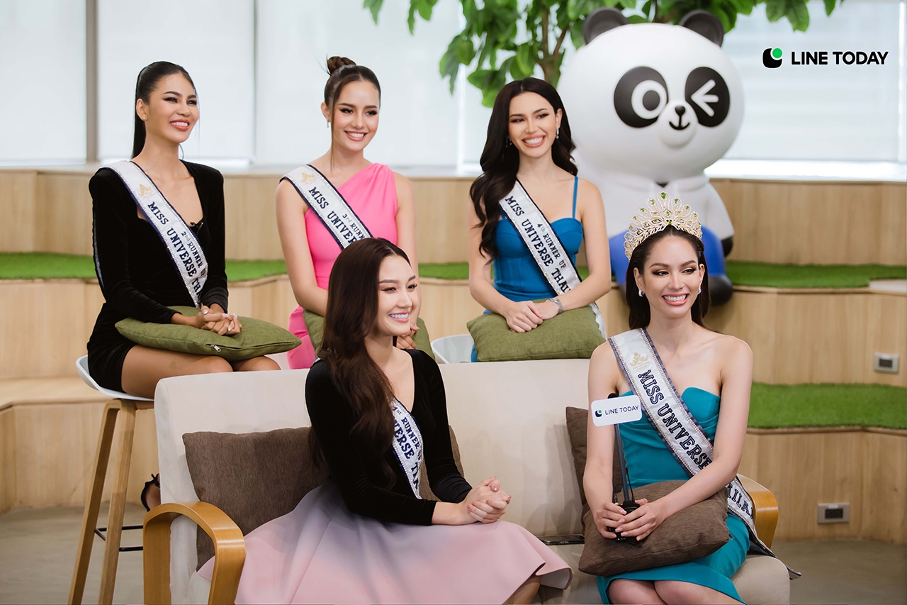 LINE TODAY เปิดบ้านต้อนรับ 5 สาวจากเวทีมิสยูนิเวิร์สไทยแลนด์ 2022 แอนนา เสืองามเอี่ยม มิสยูนิเวิร์สไทยแลนด์ และรองชนะเลิศทั้ง 4 นิโคลีน พิชาภา กัญญาลักษณ์ หนูแก้ว สุชาตา ช่วงศรี และ เรนิตา เวโรนิก้า ปากาโน
