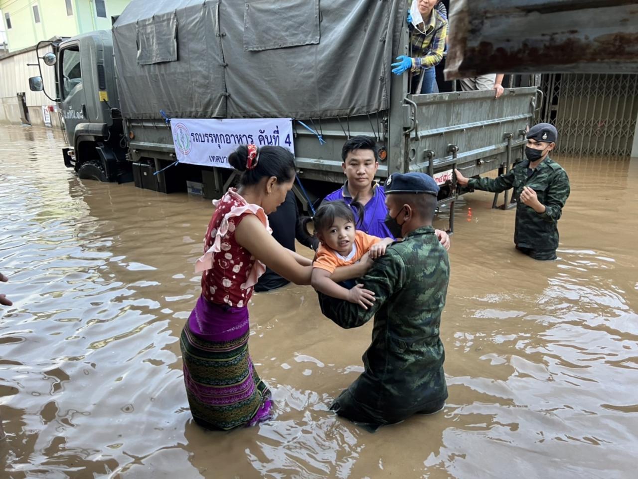 เมื่อวันที่ 24 ส.ค.65 จากสถานการณ์ฝนตกหนักต่อเนื่องในทุกภูมิภาคของไทย ส่งผลให้เกิดน้ำท่วมฉับพลันและน้ำป่าไหลหลากโดยเฉพาะพื้นที่ลาดเชิงเขาใกล้ทางน้ำไหลผ่านและพื้นที่ลุ่มในหลายจังหวัดภาคเหนือ กองทัพบกโดยศูนย์บรรเทาสาธารณภัยกองทัพภาคที่ 3 ได้จัดกำลังพลและยุทโธปกรณ์ร่วมกับส่วนราชการ ฝ่ายปกครองท้องถิ่นเข้าช่วยเหลือผู้ประสบอุทกภัย, เข้าสำรวจความเสียหาย, ขนย้ายสิ่งของขึ้นที่สูง, อำนวยความสะดวกด้านการจราจร, แจกจ่ายอาหารปรุงสุก, นำเรือกู้ภัยเคลื่อนที่เร็วเข้าอพยพประชาชนและส่งถุงยังชีพให้แก่ผู้ที่ได้รับผลกระทบจากอุทกภัยในหลายจังหวัด อาทิ แพร่, เพชรบูรณ์, อุตรดิตถ์, พิษณุโลก และ พะเยา