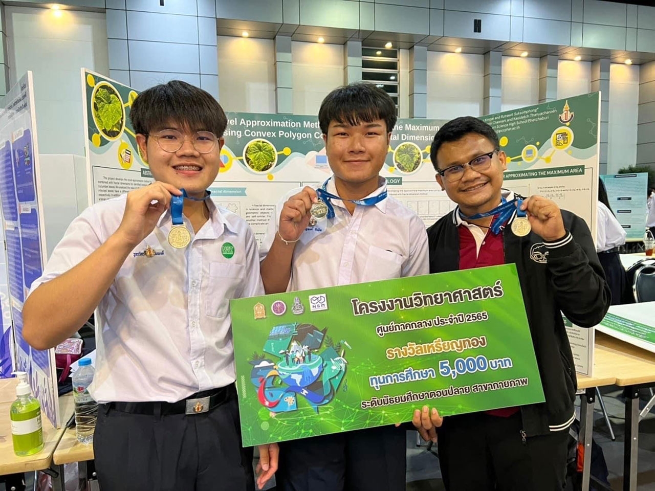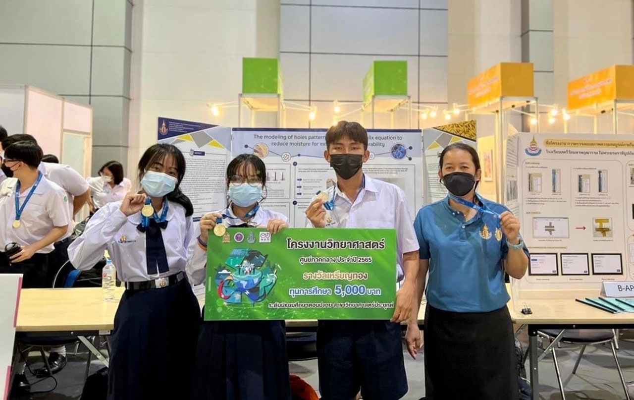 รางวัลเหรียญทอง สาขากายภาพ ผลงานการพัฒนาโครงงานของ นางสาวสกุณา ขันทอง นางสาวสมัชญา จันทร์สว่าง และ นางสาวศรัณย์พร ประสงค์ดี นักเรียนชั้นมัธยมศึกษาปีที่ 6 คุณครูที่ปรึกษา คือ นายมนัส สิทธิโชคธรรม