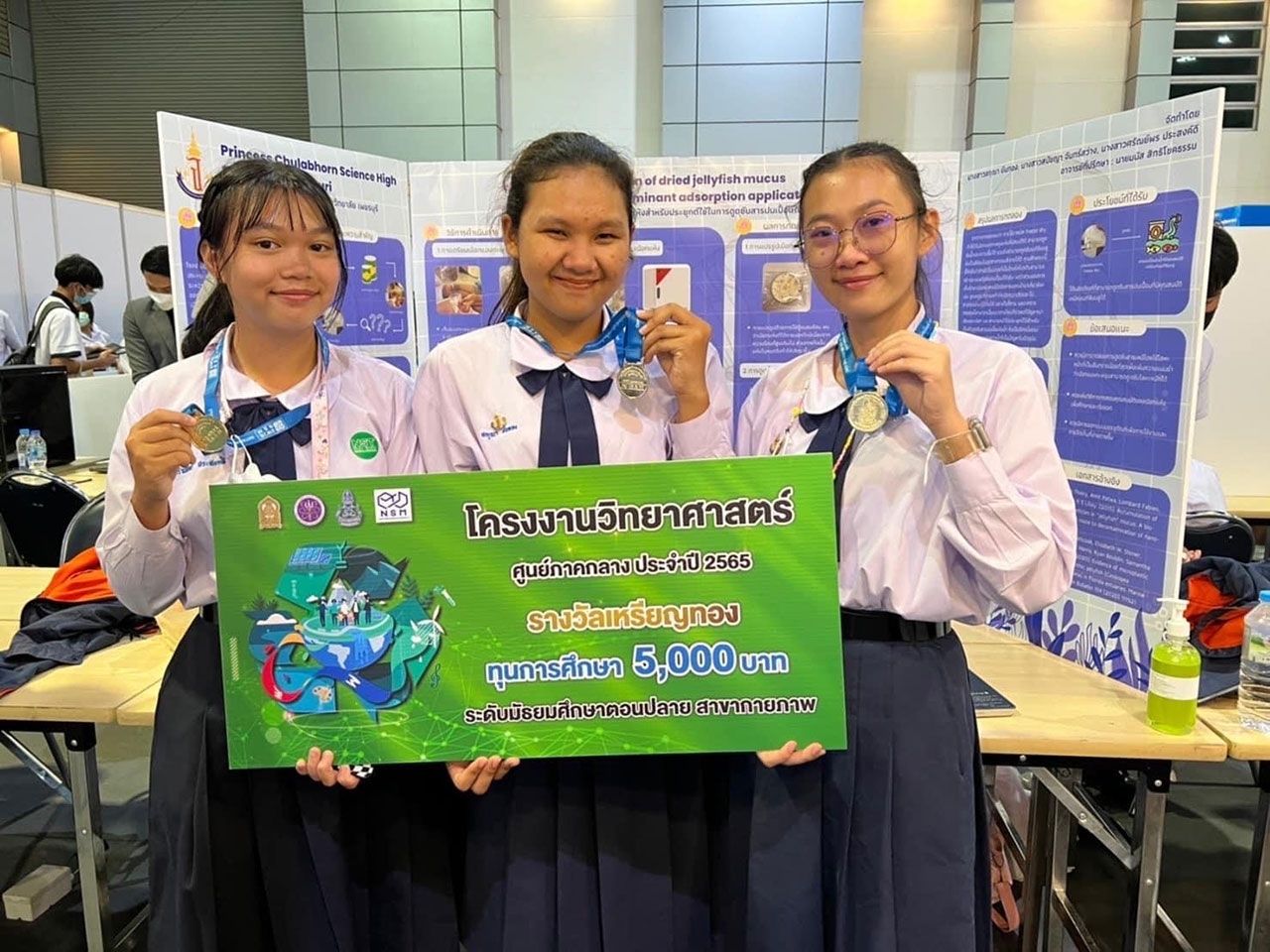 การประกวดโครงงานวิทยาศาสตร์ ระดับมัธยมศึกษาตอนปลาย จัดโดยสมาคมวิทยาศาสตร์ ศูนย์ภาคกลาง ในงาน “มหกรรมวิทยาศาสตร์และเทคโนโลยีแห่งชาติ ประจำปี 2565” ณ อิมแพ็ค อารีน่า เมืองทองธานี ระหว่างวันที่ 17-21 สิงหาคม 2565 นักเรียนโรงเรียนวิทยาศาสตร์จุฬาภรณราชวิทยาลัย เพชรบุรี ได้เข้าร่วมนำเสนอโครงงานและรับรางวัลเหรียญทอง พร้อมเป็นตัวแทนเข้าร่วมแข่งขันในระดับชาติ จำนวน 3 รายการ ได้แก่
